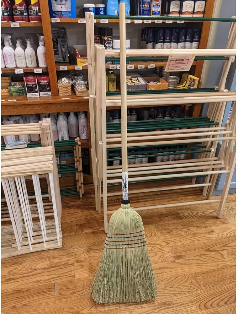 Old-fashioned corn straw barn brooms just seem to work better and sweep cleaner than their artificial counterparts. Quality corn straw is expertly selected, bound and sewn by hand for years of use. Corn straw is bound in the middle for tough-job strength . Hardwood handle. 57 inches long. Amish-made.