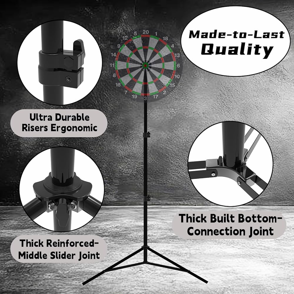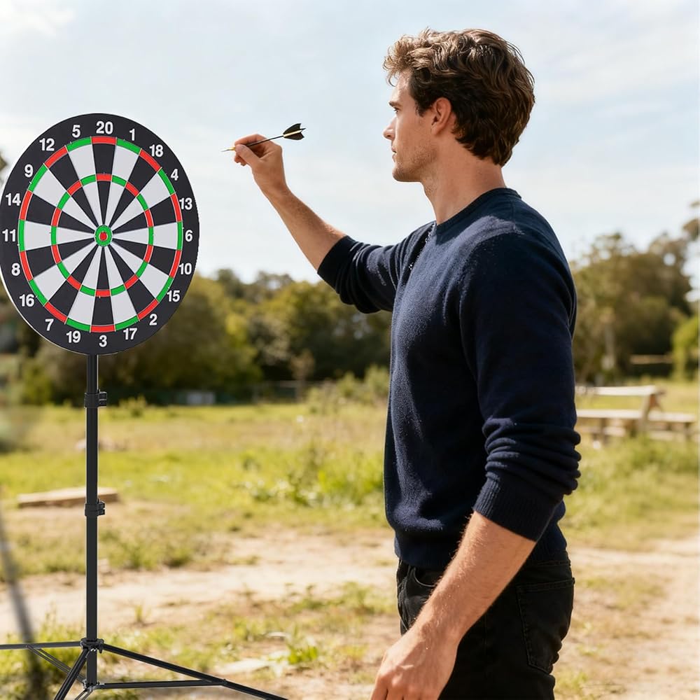 • تصميم سريع الإعداد: يمكن طي حامل لوحة رمي السهام بشكل صغير لسهولة النقل والتخزين. يتطلب الحد الأدنى من التجميع ويمكن إعداده في دقائق، مما يجعله مثاليًا للمنازل أو الحفلات أو المناسبات الخارجية.