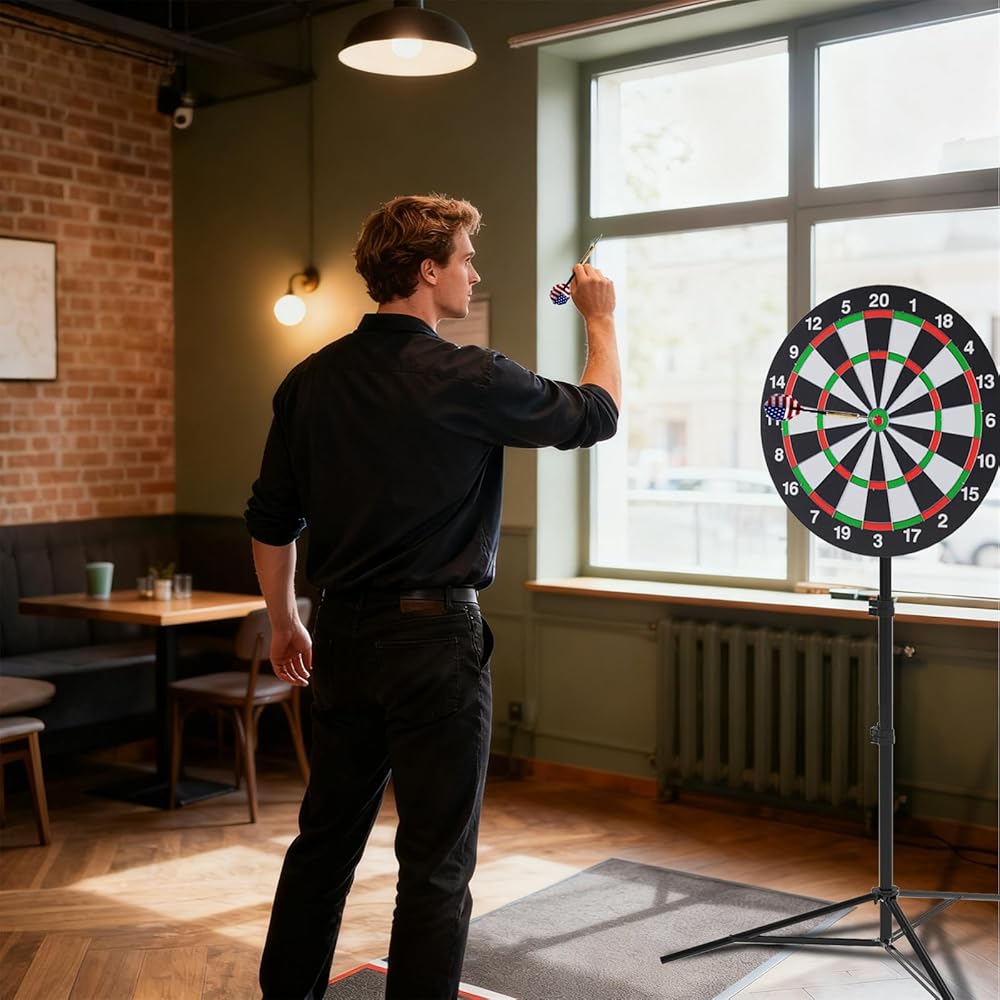 • استخدام متعدد الاستخدامات ومحمول: مثالي لأي مساحة. يمكنك تحريك لوحة رمي السهام الخاصة بك وإعدادها بسهولة في أي مكان - وهي مثالية لغرفة المعيشة أو كهف الرجال أو الحديقة أو المكتب أو الحانة أو المناسبات المجتمعية. لا حاجة للتركيب الدائم.