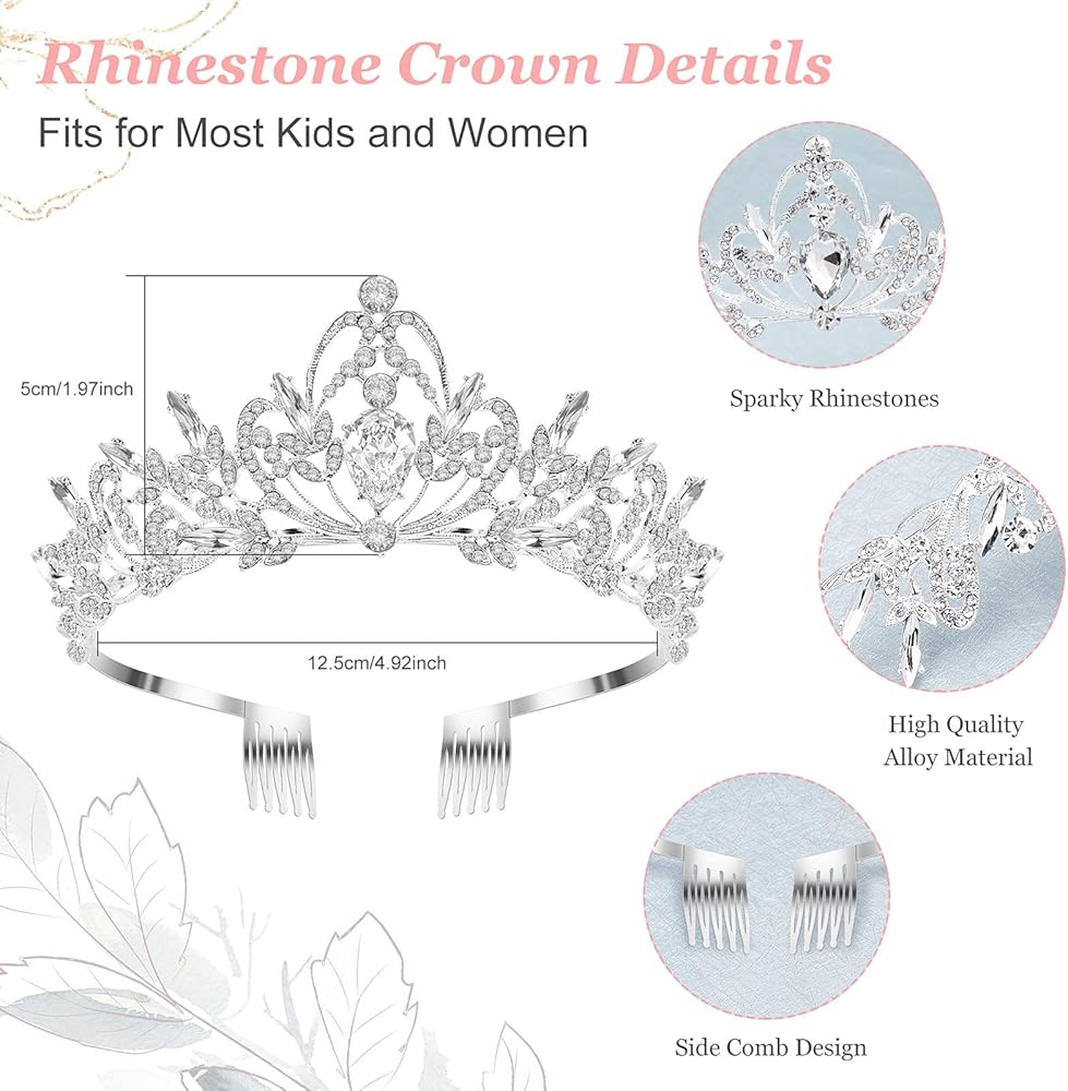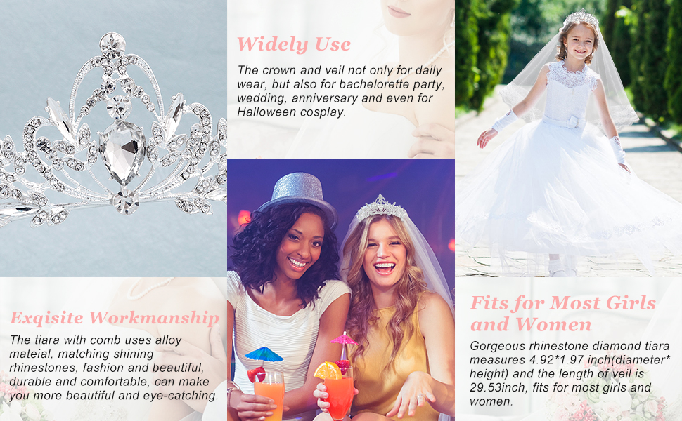 【 مقاس واحد يناسب الجميع】 يبلغ عرض تاج حجر الراين حوالي 4.95 انش وارتفاعه 1.97 انش، ويمكن أن يناسب معظم مقاسات رأس الفتيات والنساء. يبلغ طول الوشاح الشبكي 29.55 انش، وهو طول مثالي لتأطير الرأس بشكل لطيف، مما يجعلك أكثر جمالاً.