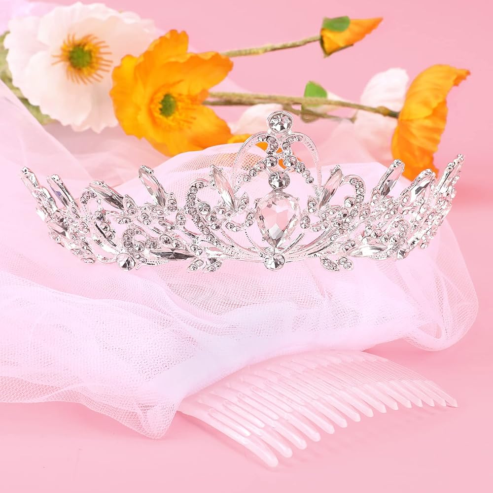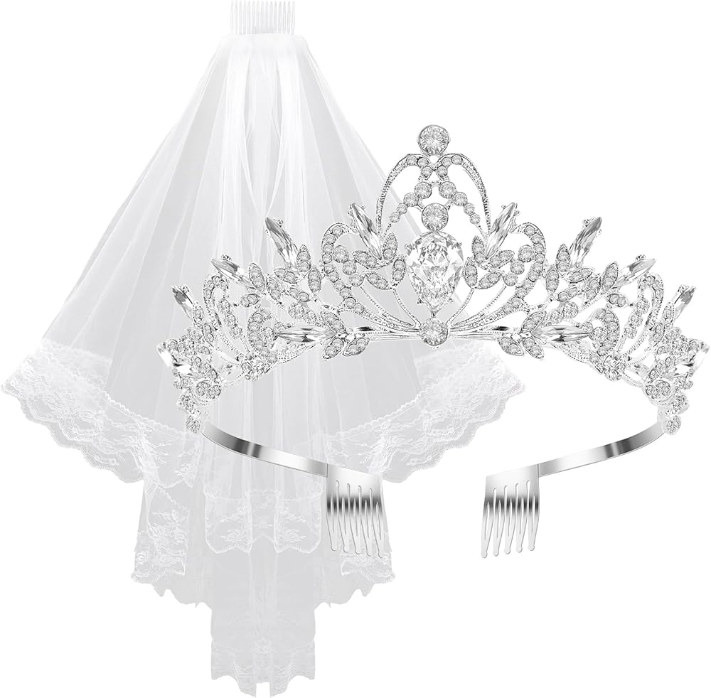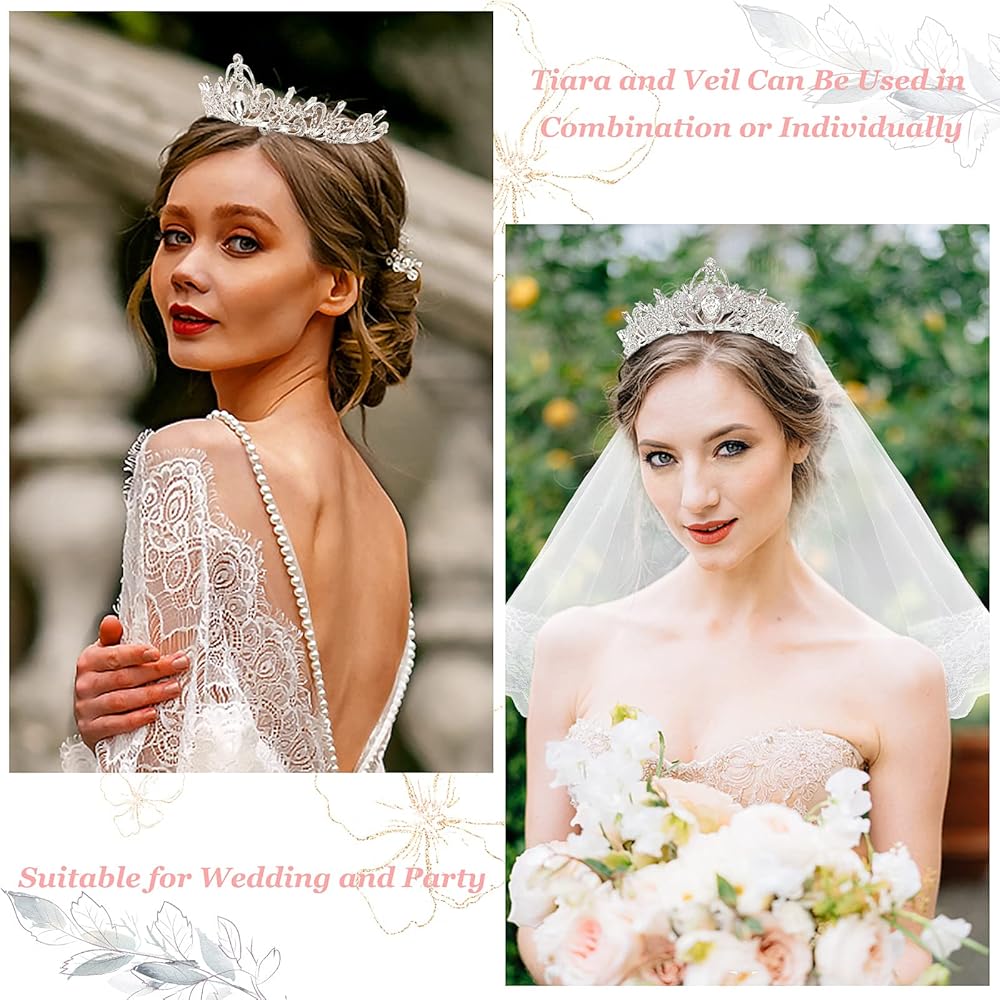 【 وشاح وتاج لتوديع العزوبية مع مشط】 تم تصميم وشاح الزفاف والتيجان بمشط شعر، ويمكن استخدامها معًا أو بشكل فردي، ويمكن تثبيتها بسهولة على الرأس بدون مشابك شعر إضافية، لا داعي للقلق بشأن الانزلاق أو إثقال رأسك.
