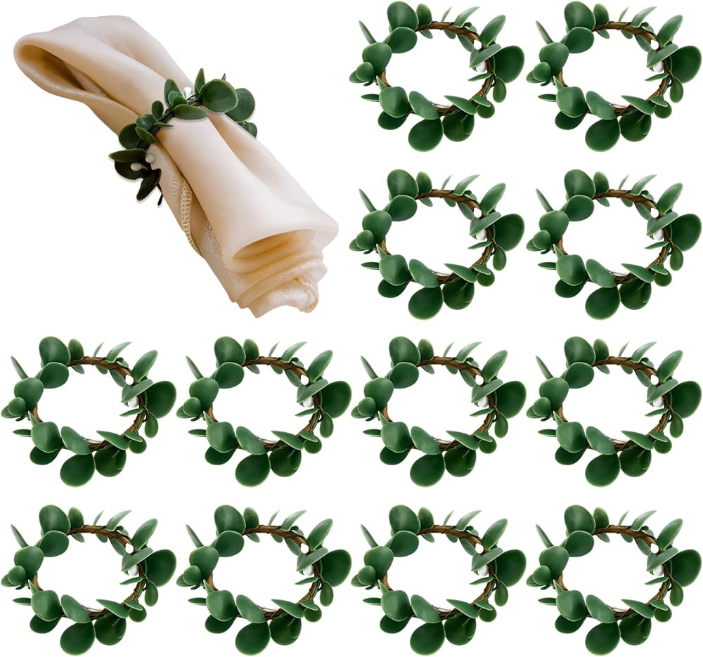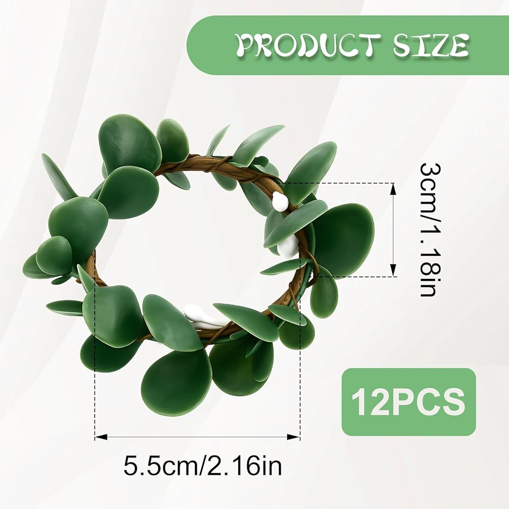 PACKAGE QUANTITY: This set includes 12 pieces of boho napkin rings with artificial rustic eucalyptus leaf designs, providing ample quantity for daily use, festive decorations, or sharing with friends during gatherings and celebrations.