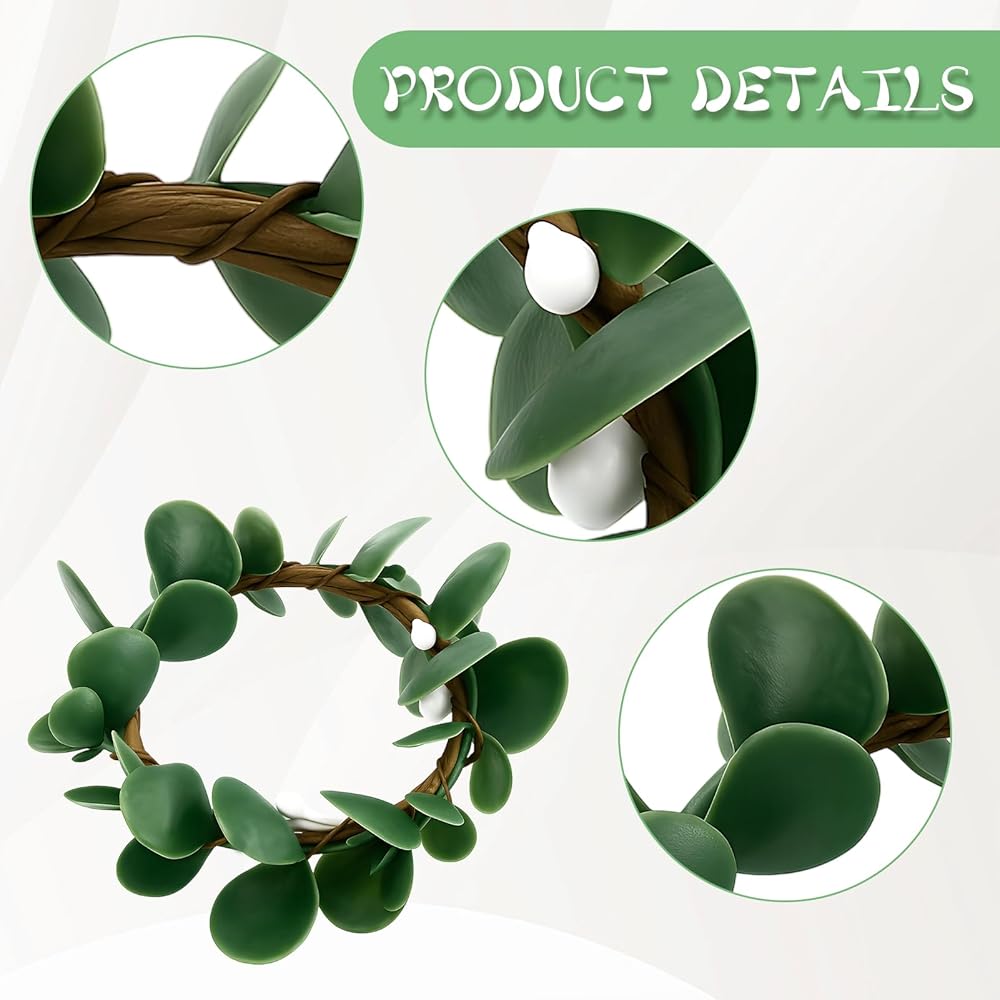 NATURAL BOHO AESTHETIC: Each green farmhouse napkin holder features lifelike faux eucalyptus leaves and rustic wooden beads, creating a vibrant spring-inspired look. Made from durable, eco-friendly materials, these rings resist breakage and deformation while mimicking nature's beauty.