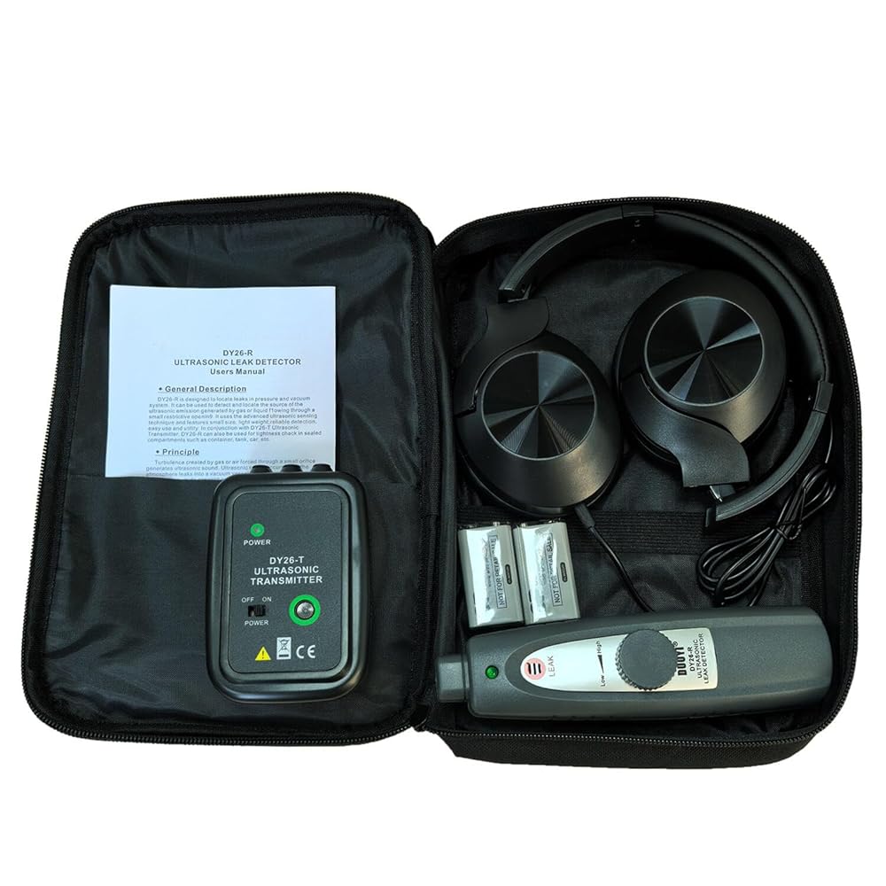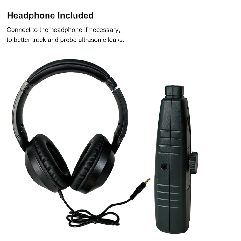 🎯 تحديد دقيق وتنبيهات واضحة: استمع إلى تردد "نغمة الدق" المتزايد من خلال سماعات الرأس وشاهد ضوء LED الساطع "LEAK" يضيء عند الاقتراب من مصدر التسرب. يعمل مقبض الحساسية على تحسين الكشف في البيئات الصاخبة.