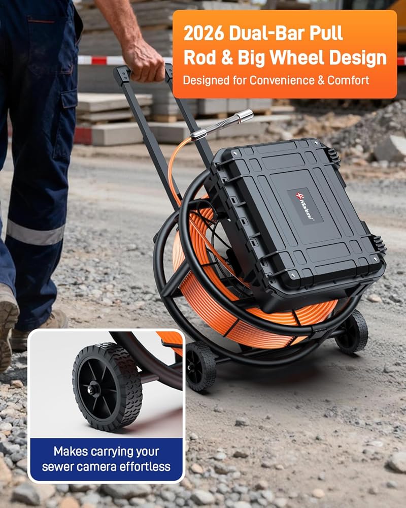 • 【تصميم قضيب سحب مزدوج وعجلات كبيرة】مصممة لتحقيق الكفاءة، تتميز مجموعة كاميرا المجاري الكل في واحد بمقبض سحب عالي التحمل وعجلات كبيرة لسهولة الحركة على التضاريس الوعرة. بفضل الشاشة الثابتة مقاس 10 بوصات ومجموعة التشخيص الكاملة المثبتة مسبقًا بشكل آمن، يمكنك تحريك النظام بأكمله دون عناء والاستعداد للفحص في لحظات - مما يوفر الوقت والجهد في كل عملية فحص للأنابيب.