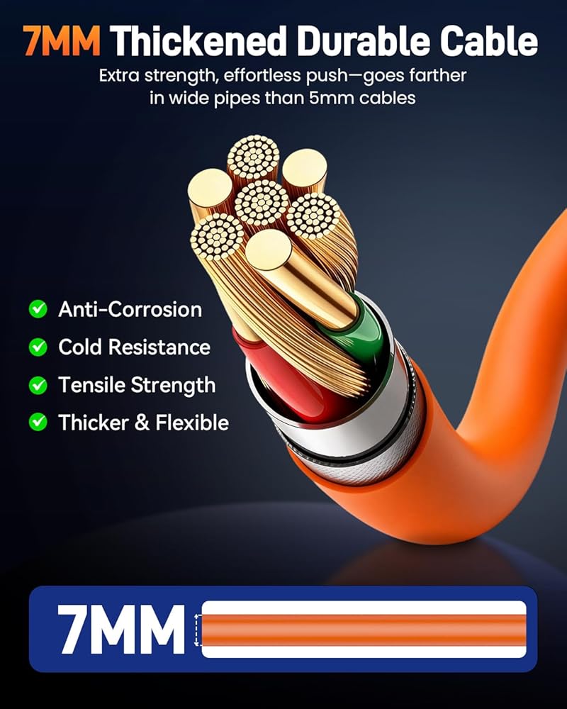 • 【كابل من الألياف الزجاجية شبه الصلبة 7 مم 】يوفر كابل الألياف الزجاجية من الدرجة الصناعية بسمك 7 مم/0.28 بوصة (طول 200 قدم/60 متر) صلابة معززة ووصول ممتد مقارنة بالكابلات القياسية 5 مم، مما يسمح له بالتمدد بشكل أكبر بجهد أقل.