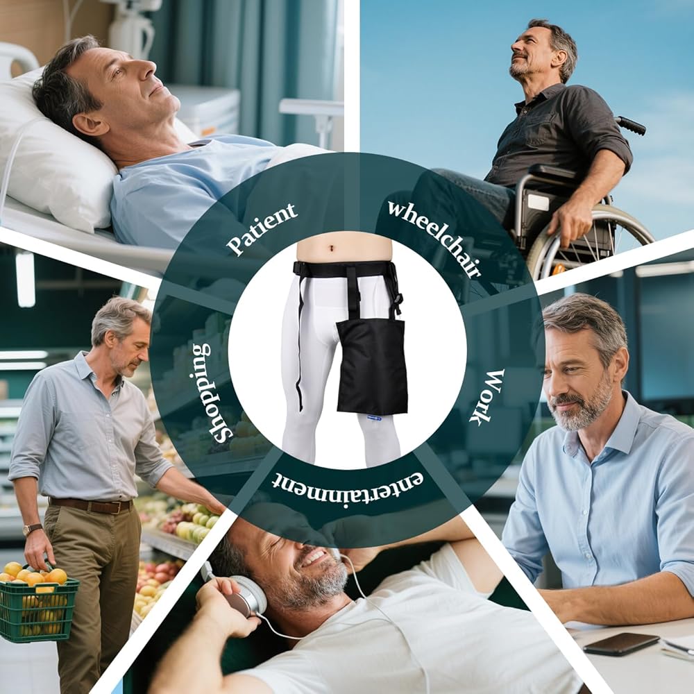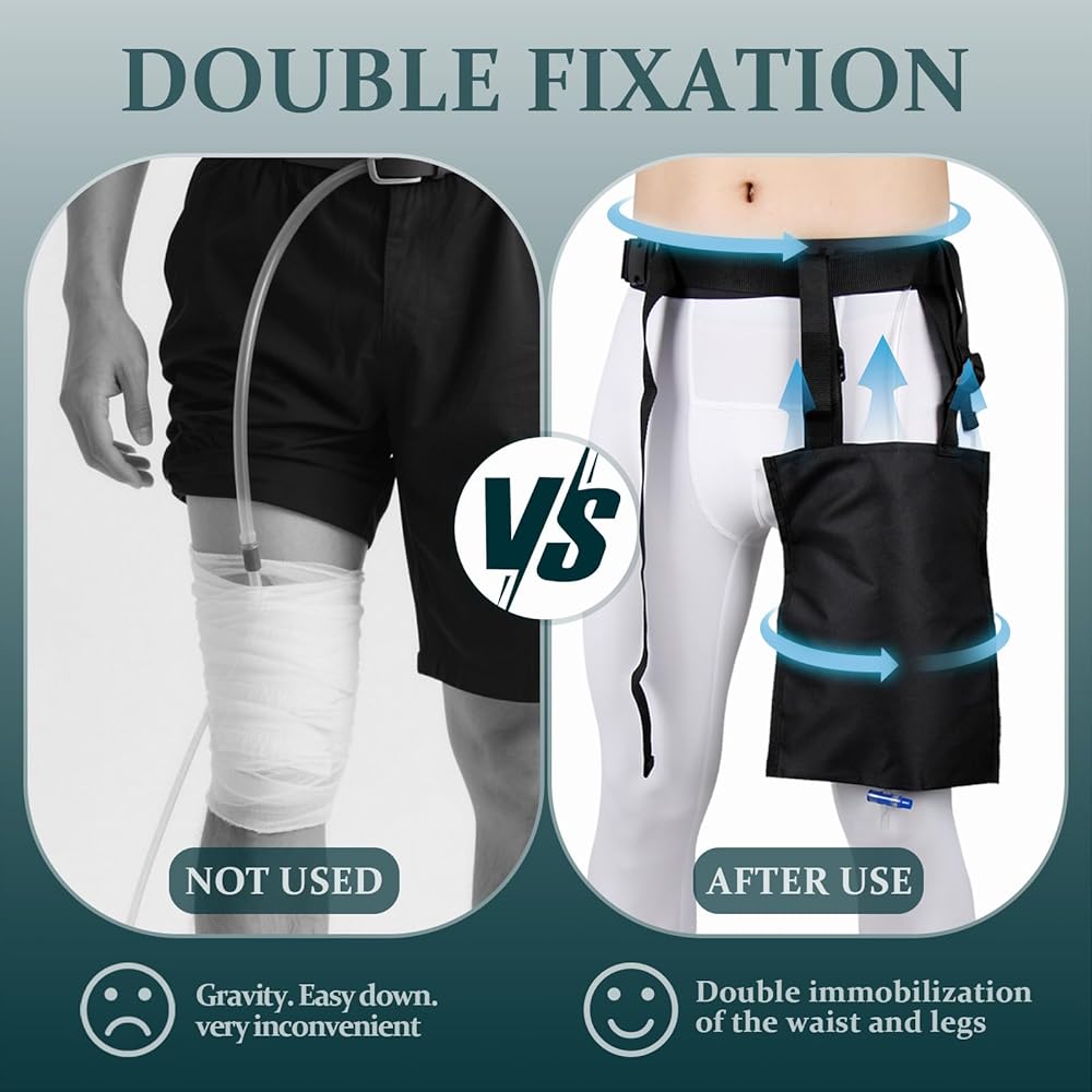 Secure Comfortable Urine Bag Holder – 2-Pack with Adjustable Waist Leg Straps Keep your urine bag securely in place with our dual-fastening, adjustable urine bag holder—designed for stability, comfort, and convenience. Perfect for travel, post-surgery recovery, or everyday mobility, this holder ensures your catheter and urine bag stay safe and discreet. Why Choose Our Urine Bag Holder? Dual Adjustable Straps– Customize the fit with an adjustable waist belt and leg strap for a secure, slip-free hold. The height-adjustable design keeps the bag comfortably positioned near your thigh. Soft Breathable Fabric – Made from gentle, airy material to prevent skin irritation. The urine bag stays elevated, avoiding direct contact with your skin for added comfort. Convenient 2-Pack Design – Includes two holders, so you can use one while washing the other—ideal for hygiene and continuous use. Universal Compatibility – Fits most urine bags up to 2000ml and features a bottom drainage hole for easy tube access and hassle-free emptying. Easy to Clean & Reusable – Designed for quick washing and long-lasting use, making it a practical solution for catheter care. Ideal For: - Post-surgical recovery - Travel daily activities - Mobility assistance - Nursing home care Enjoy freedom of movement without worrying about slips or discomfort—get your reliable urine bag holder today!