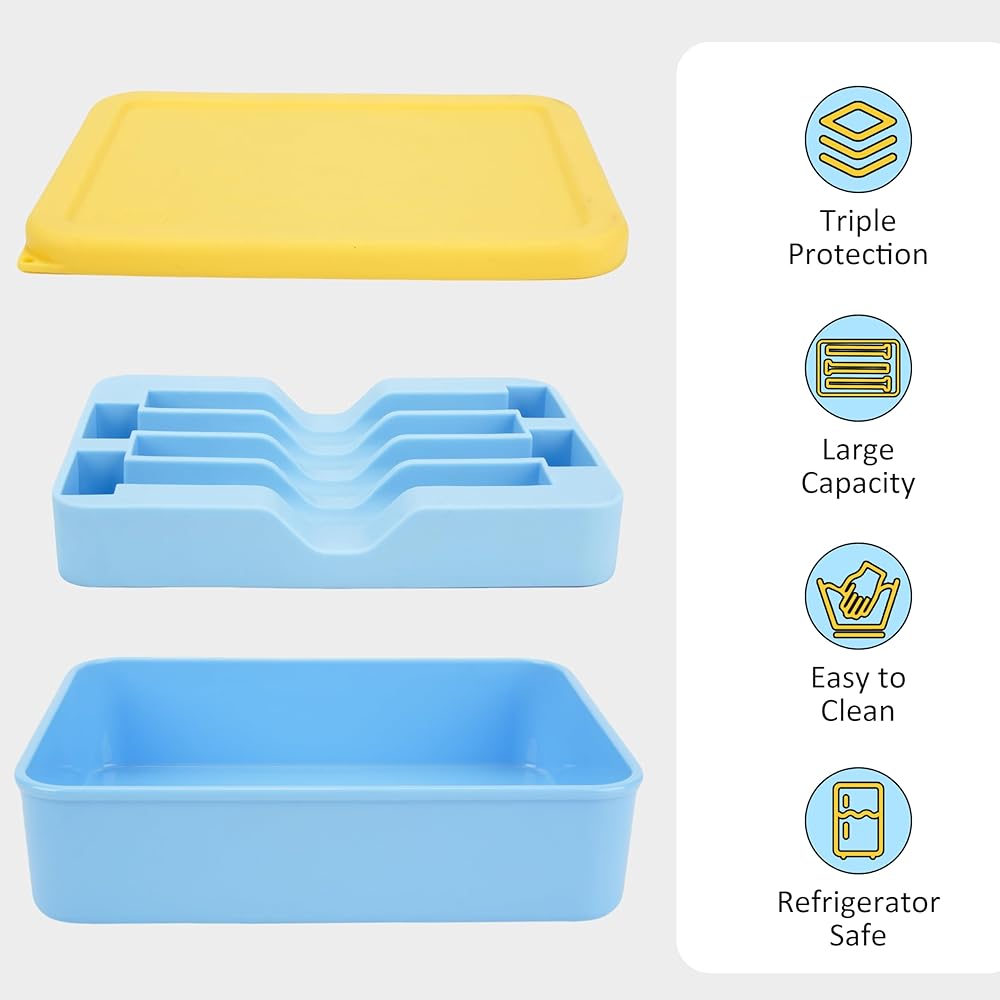 【تصميم متعدد الحماية】مصنوع من البلاستيك الفاخر والسيليكون الآمن غذائيًا، يقاوم الغلاف المتين الضغط والسقوط، بينما تمتص الحشوة الناعمة الصدمات لمنع الخدوش والتأثيرات. غطاء محكم الإغلاق من السيليكون يحافظ على المحتويات نظيفة وجافة وآمنة.