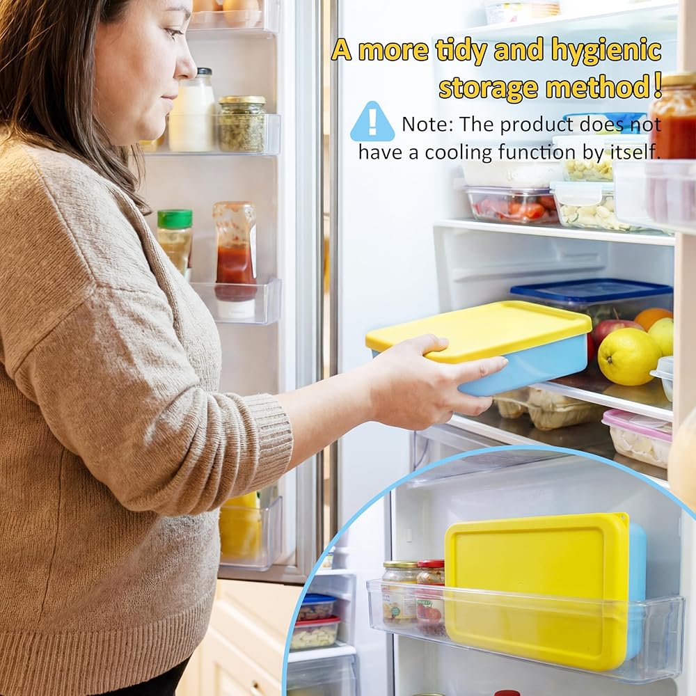 【جاهزة للثلاجة وصحية】نحيفة وصغيرة الحجم، ويمكن وضعها بسهولة في حجرات الثلاجة/أرفف الأبواب من أجل تنظيم موفر للمساحة. إغلاق محكم يمنع روائح الثلاجة والغبار من أجل بيئة تخزين صحية.