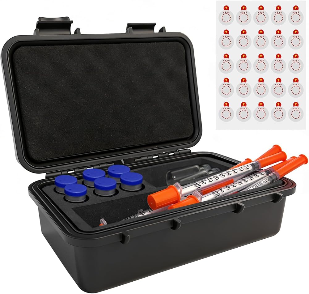 Rugged & Protective Construction: Crafted from high-strength material with reinforced metal hinges, this peptide storage case is built to withstand impact and daily use. The interior lid is lined with thick cushioning foam, providing an extra layer of shock absorption to protect delicate medical supplements during travel or storage