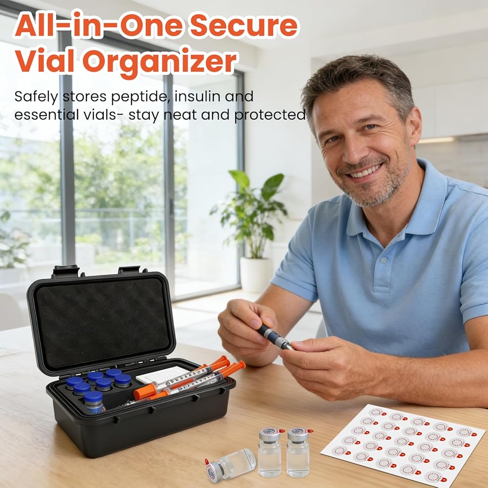Temperature-Stable for Secure Storage: Designed to be both freezer and refrigerator safe, this peptide vial case reliably protects temperature-sensitive contents. The moisture-resistant material ensures integrity in cold environments, making it ideal for storing medications or supplements that require controlled temperatures at home or on the go