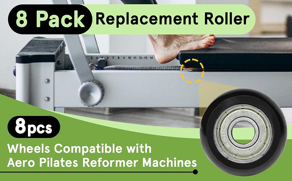 توافق مثالي: تم تصميم هذه المجموعة المكونة من 8 عجلات دوارة بديلة خصيصًا لتتوافق مع أجهزة Aero Pilates Reformer. مع قطر دقيق يبلغ 1.26 بوصة (32 ملم) وعمود 8 ملم، فهو بمثابة ترقية مباشرة، مما يضمن ملاءمة سلسة واستعادة حركة النقل السلسة للمصلح.