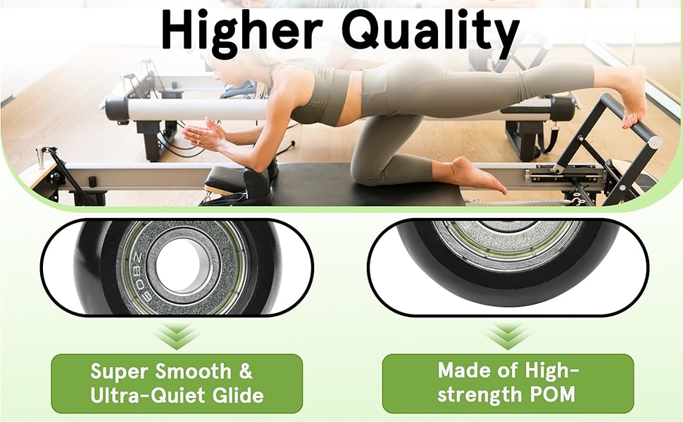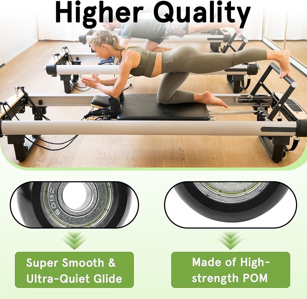 【انزلاق فائق النعومة وهادئ جدًا】جرب جلسة بيلاتيس متجددة. تم تصميم العجلات الدوارة الخاصة بنا لتوفير انزلاق سلس بشكل استثنائي وصامت تقريبًا، مما يمنع الالتصاق والضوضاء الناجمة عن العجلات القديمة البالية، مما يجعلها مثالية للاستوديوهات المنزلية.