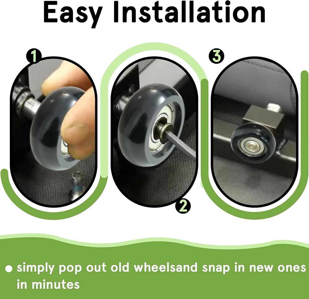 【تركيب سهل بدون أدوات】استمتع بعملية استبدال سريعة وخالية من المتاعب! ما عليك سوى إخراج العجلات القديمة البالية وتثبيت العجلات الجديدة مباشرة في مكانها خلال دقائق. ليست هناك حاجة إلى أدوات خاصة أو خبرة فنية، مما يوفر لك الوقت والجهد.