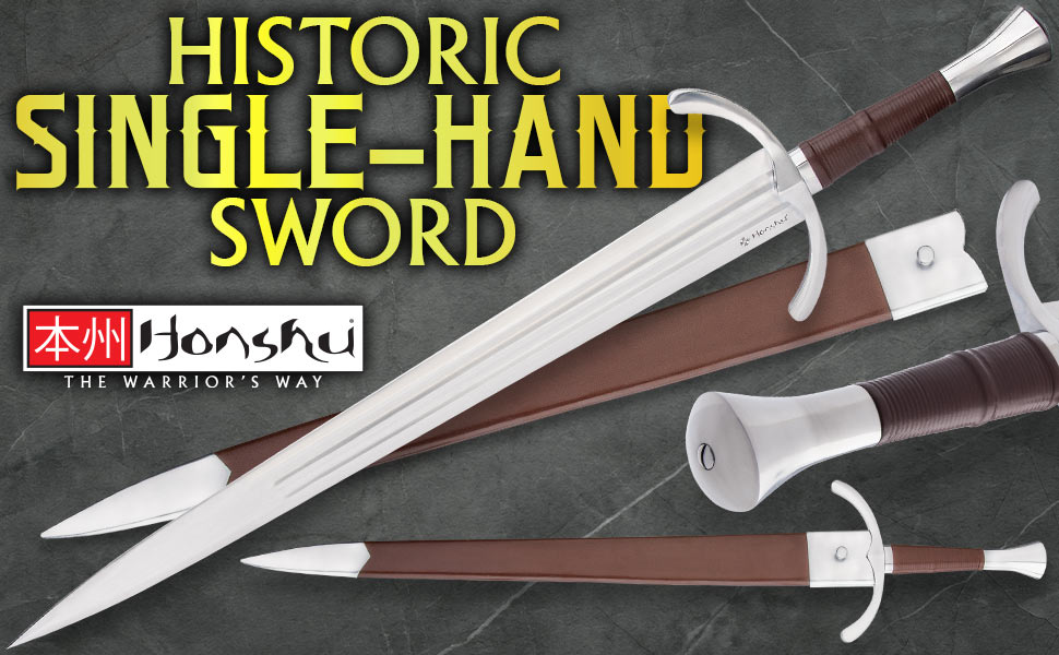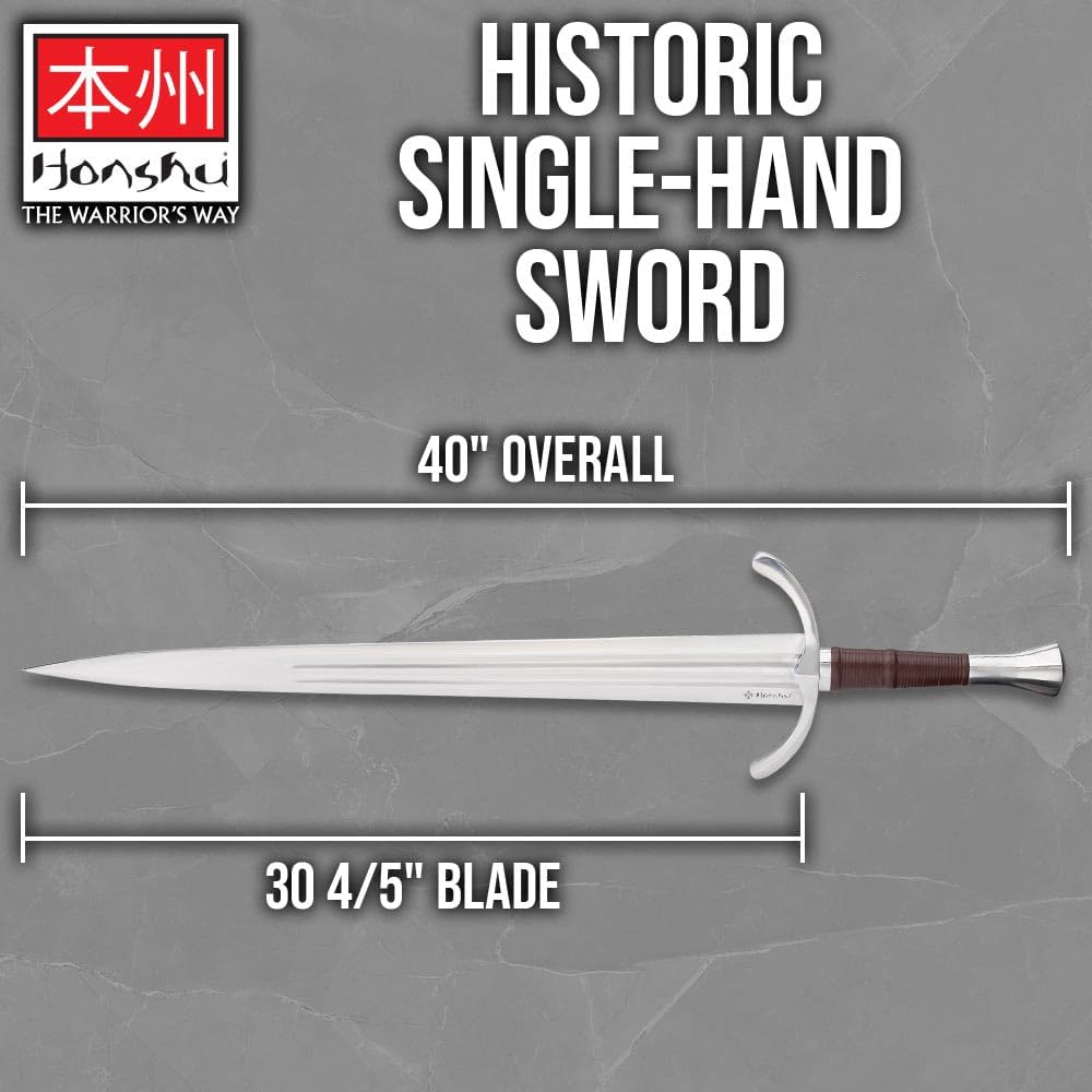 غمد فاخر: ينزلق السيف ذو اليد الواحدة مقاس 40 بوصة بسلاسة إلى غمد من الجلد البني الفاخر، مزين بتفاصيل معدنية لمزيد من الأناقة.