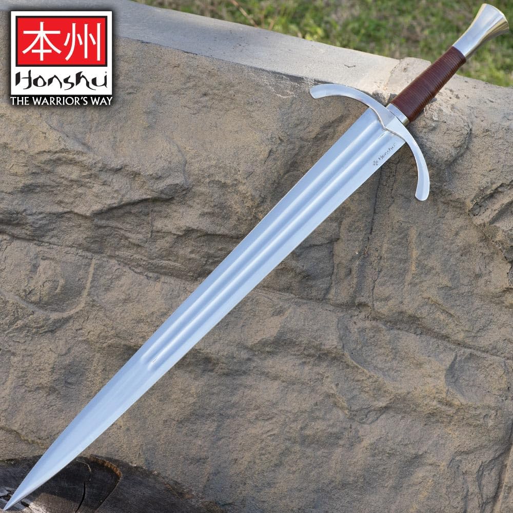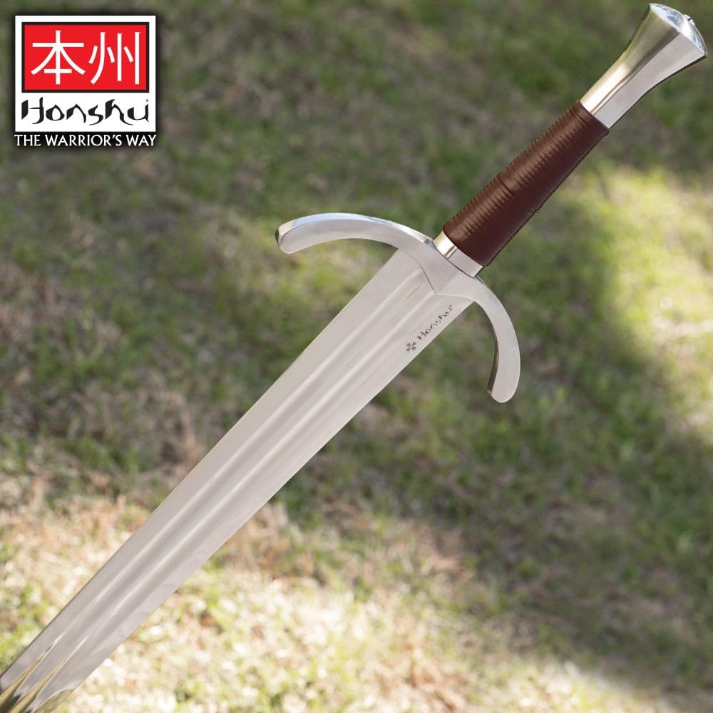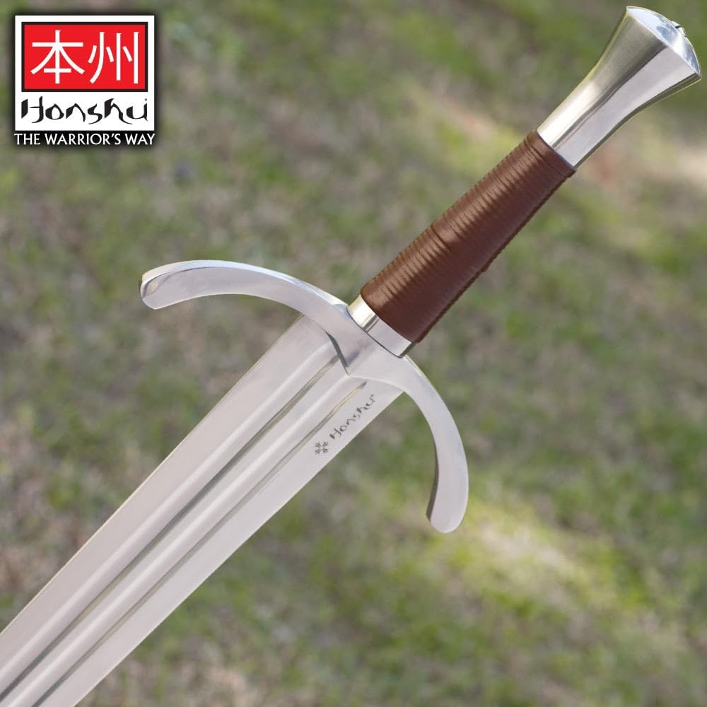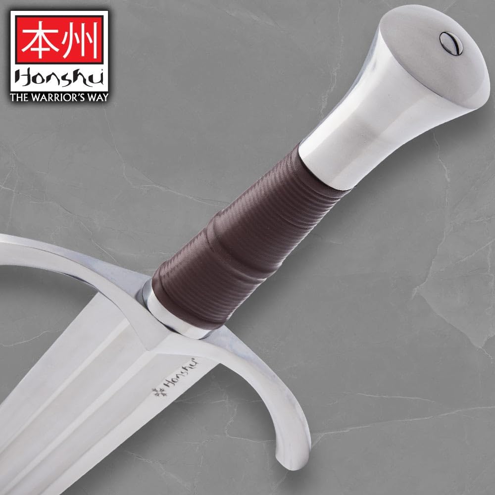 حلق من الفولاذ المصقول: مع حلق فولاذي مصقول ضخم، يوفر هذا السيف المتانة والتوازن، مما يعزز جاذبيته الجمالية العامة.