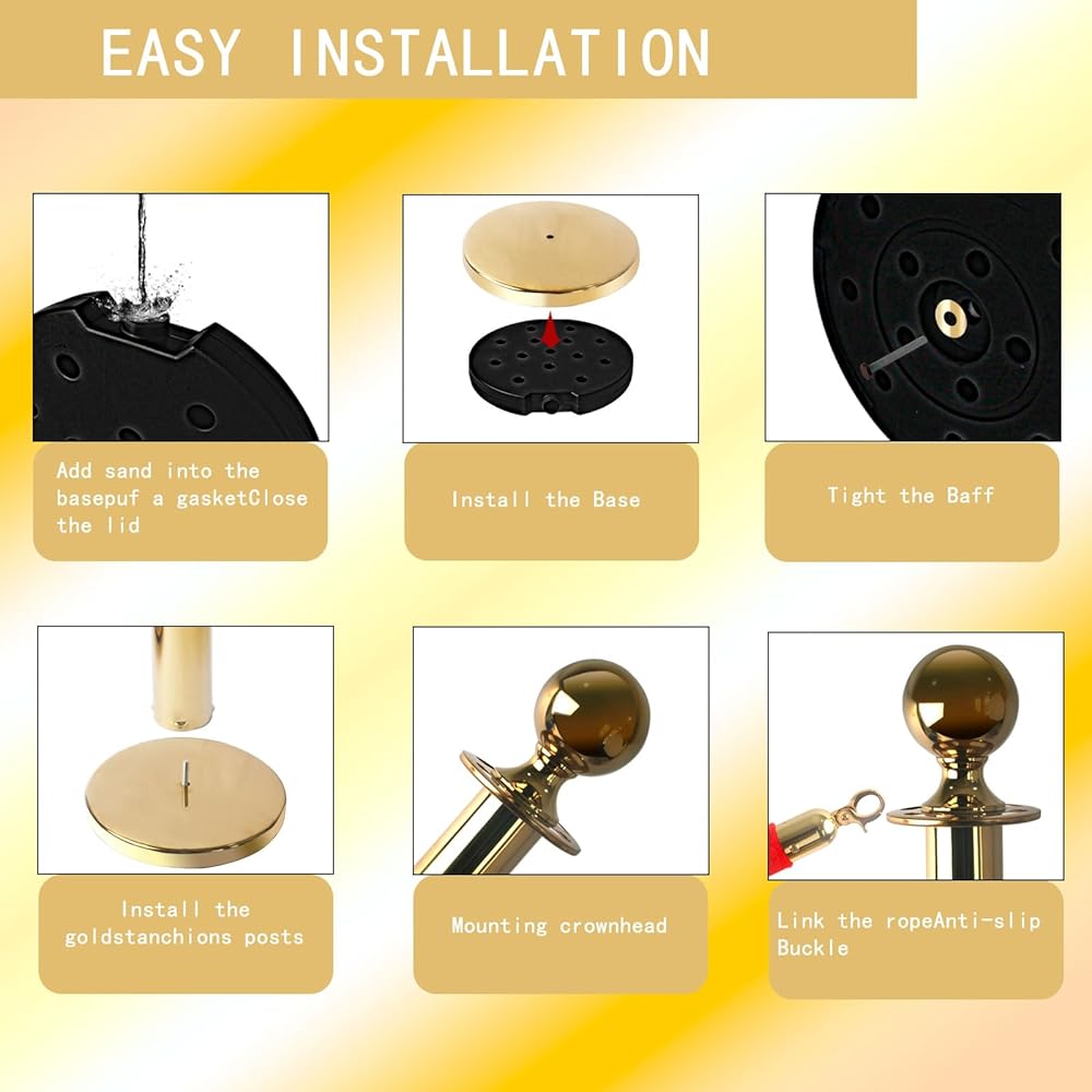 الإعداد السريع: يحتوي كل عمود على 4 محولات لسهولة ربط الحبال المخملية عبر الخطافات في كل طرف. يستغرق التثبيت بضع دقائق فقط دون أي أدوات إضافية