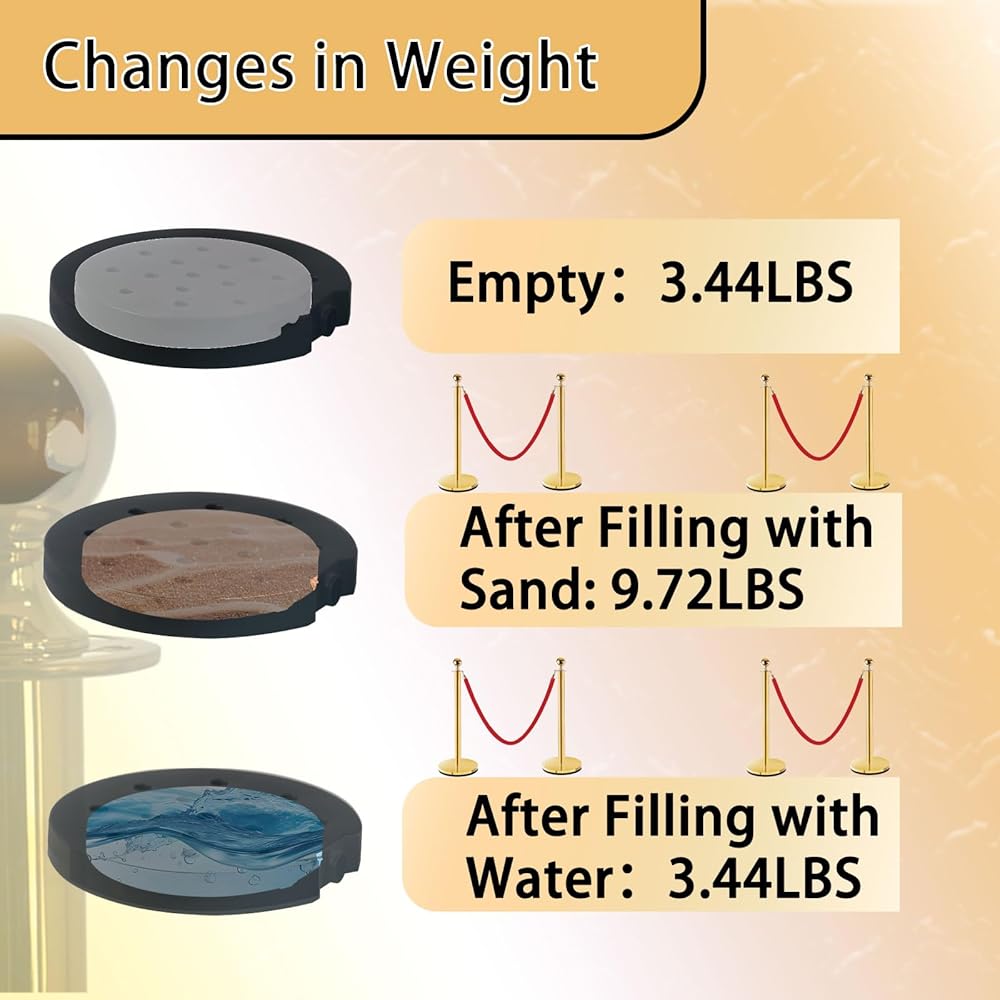 قاعدة صلبة ومستقرة: الحبال والأعمدة المخملية لدينا مجهزة بقاعدة ثابتة، والتي يمكن ملؤها بالماء أو حصى الصنفرة. وهذا يضمن أن حواجز الحبال الخاصة بنا قوية بما يكفي لتحمل الرياح القوية ولا يمكن دفعها بسهولة بواسطة الحشود، مما يوفر حلاً موثوقًا للتحكم في الحشود.