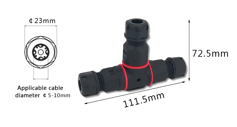 IP68 Connector T Shape 3 Pin 250V 24A Cable Wire Gland Sleeve Connector Quick Connect Connector 1Pcs