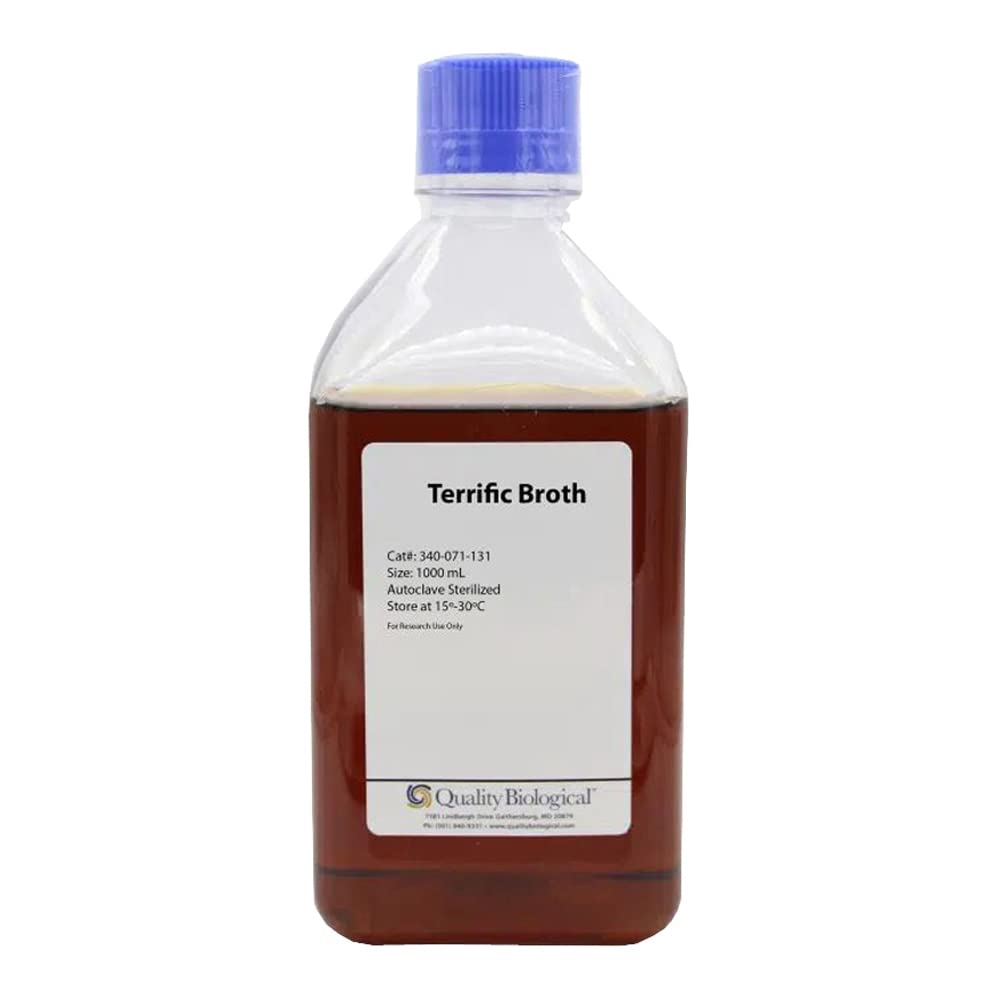 Terrific Broth is an enriched medium, which helps the recombinant strains of E. coli maintain an extended growth phase. The large amount of try tone and yeast extract in the medium allows the bacteria to produce a higher plasmid yield. Autoclave sterilized. Ready to use.
