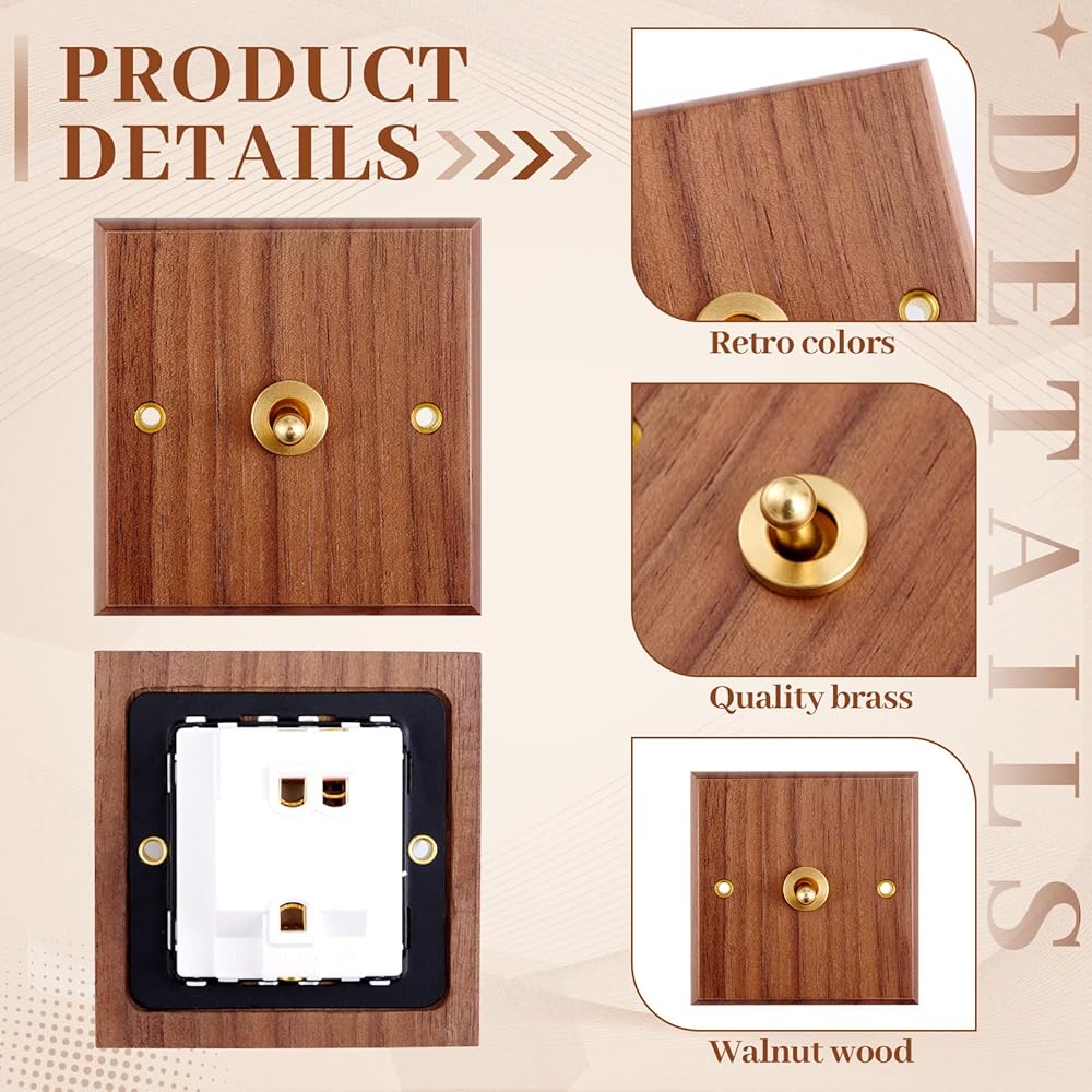 • Vintage Look: Walnut gives this walnut switch nice wood grain and vintage style; Pairs with vintage furniture (dressers, retro lamps) for nostalgic vibes in bedrooms/studies. Unlike plastic switches, its wood adds character—subtle vintage flair, no overwhelm