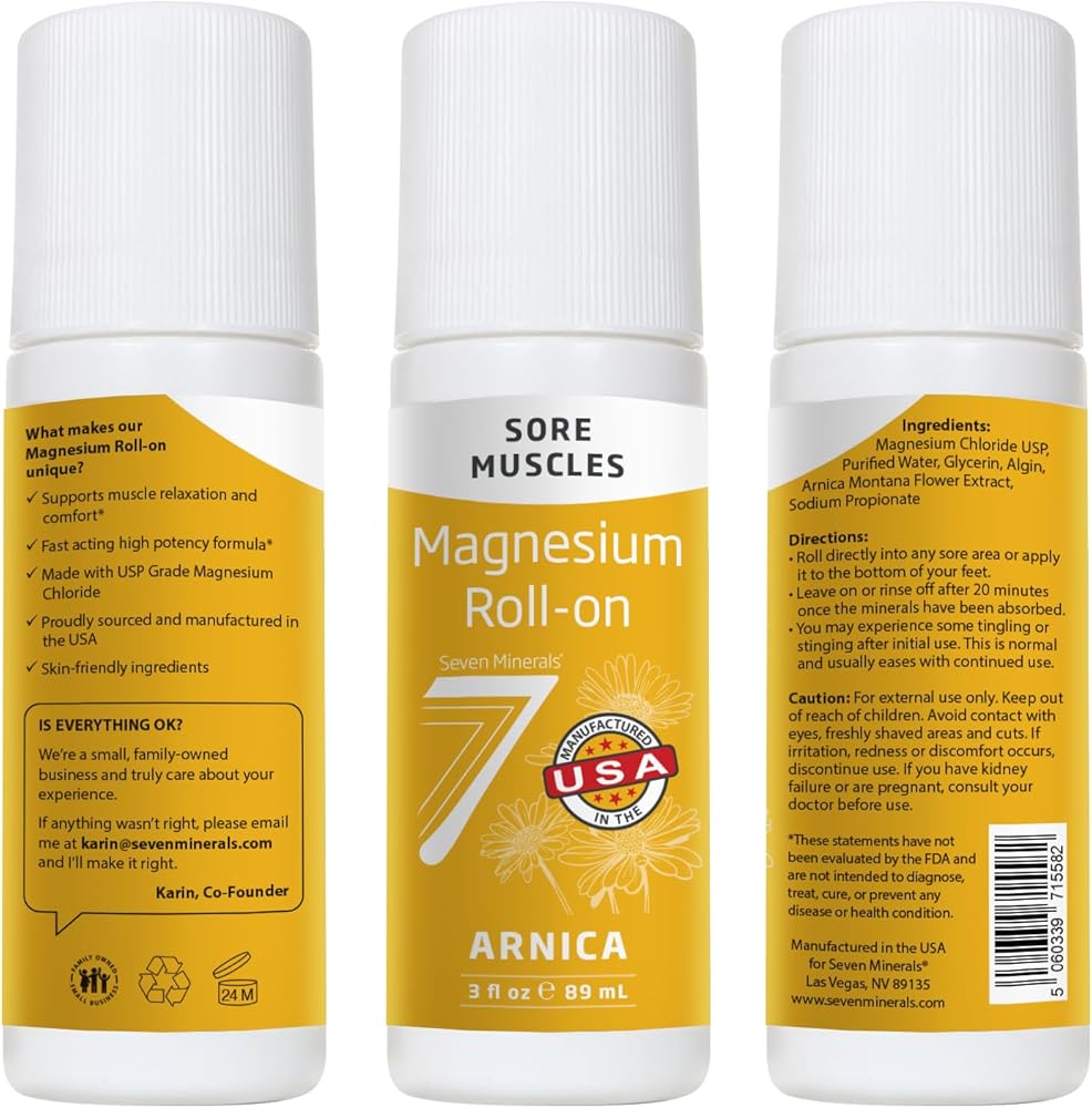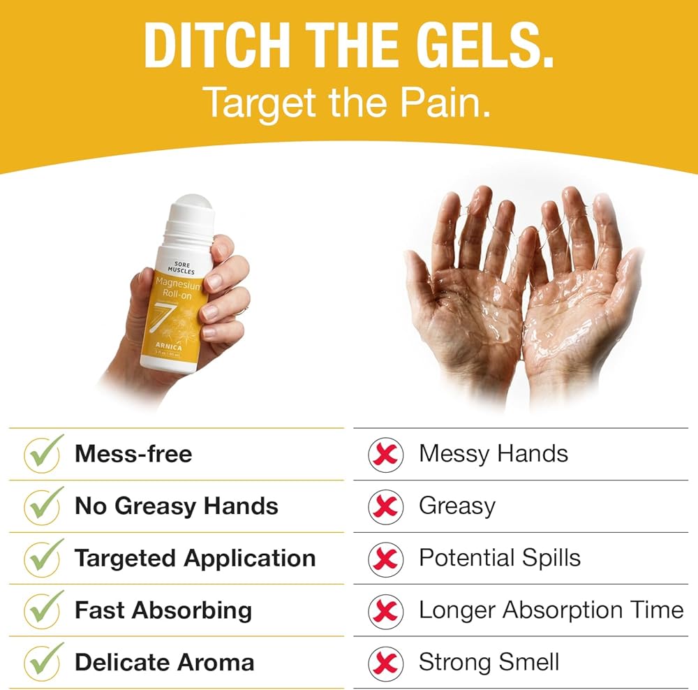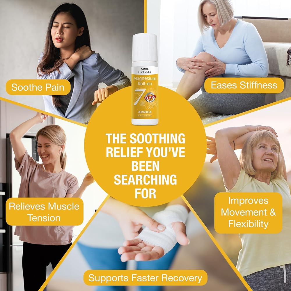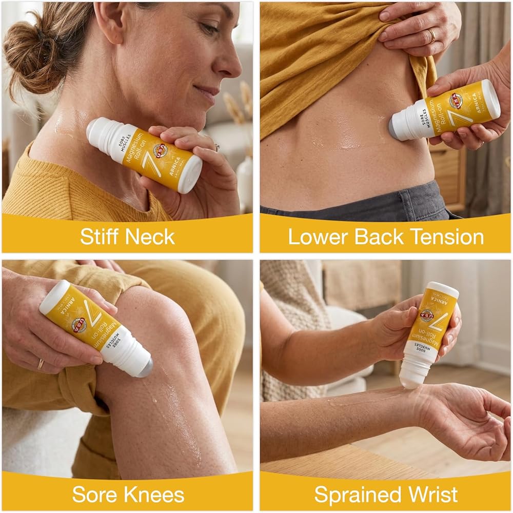 ARNICA + MAGNESIUM IN ONE ROLL ON - Two of nature's most trusted ingredients for sore muscles, now together in one mess-free stick. Our magnesium roll on with arnica delivers both a powerful muscle relaxer and natural pain relief directly through your skin, right where it hurts. 100% Absorbable - No pills to swallow, no creams to rub in, no greasy hands. Just roll on and feel the difference.
