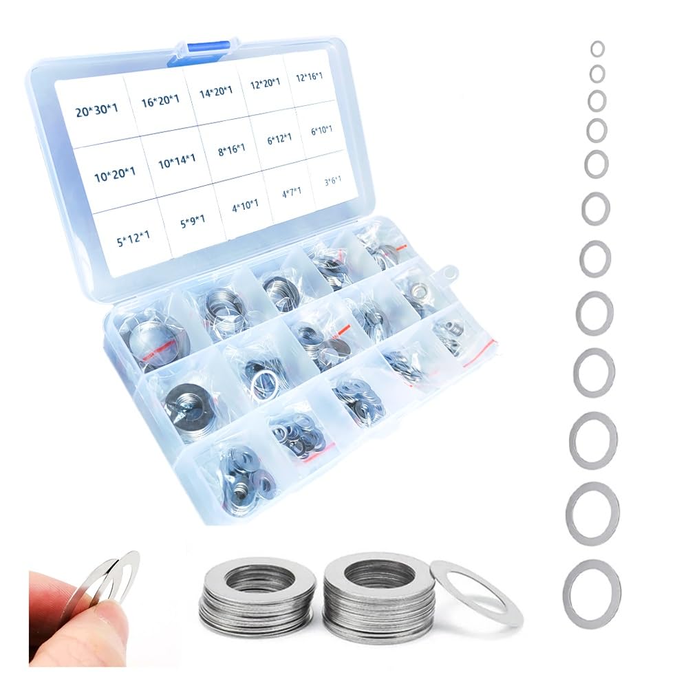 [Organized Storage Case] -- The Washers Kit comes with a plastic box for 15 separate compartments. Washers are packed in small self-sealing bags, preventing them from mixing even if the box is accidentally tipped over. it's perfect for workshops, garages, and job sites.