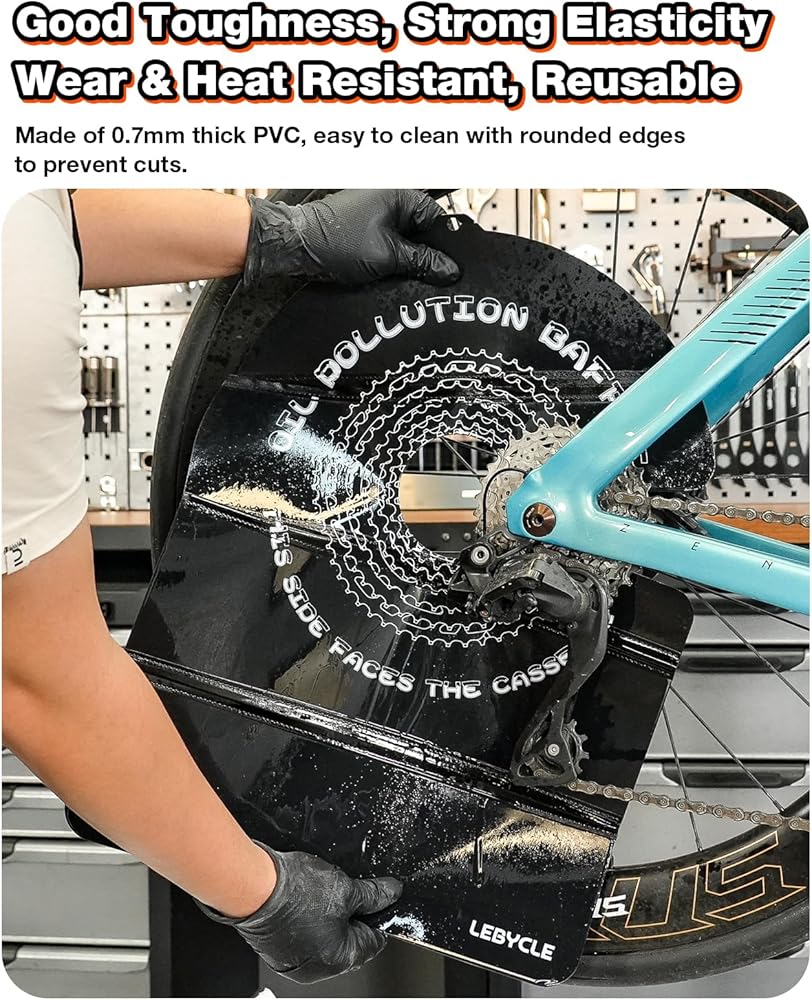 PVC متين وسهل التنظيف: مصنوع من مادة PVC بسمك 0.7 مم وهي مقاومة للاهتراء ومقاومة للماء وذات حواف ناعمة للتعامل الآمن. ما عليك سوى شطف الأوساخ وإعادة استخدامها، مما يجعل صيانة الدراجة أكثر نظافة وأسرع