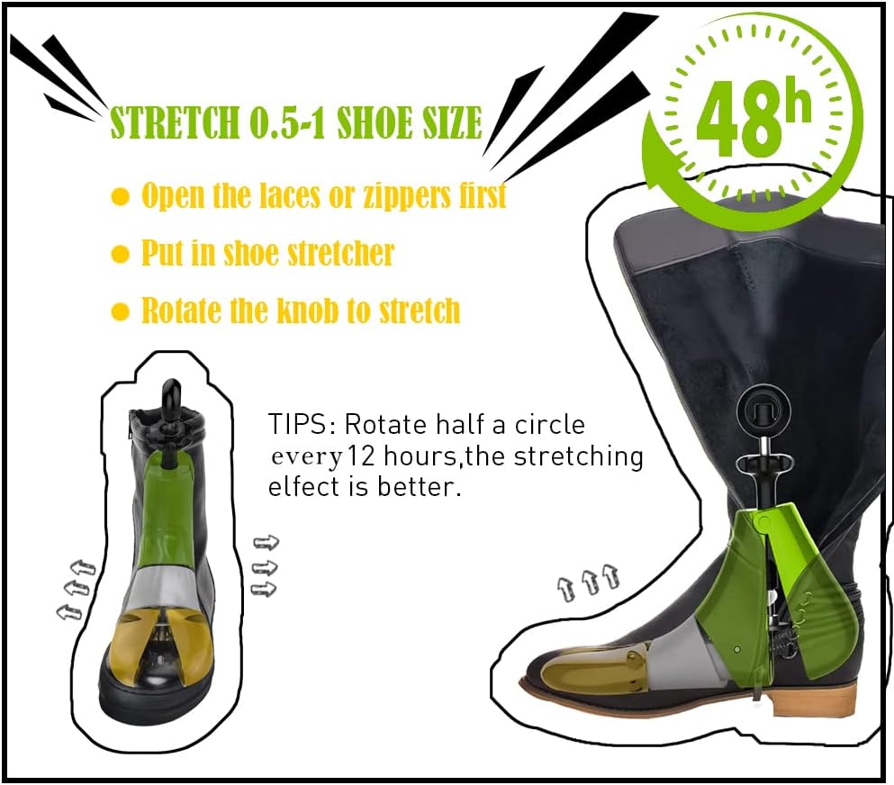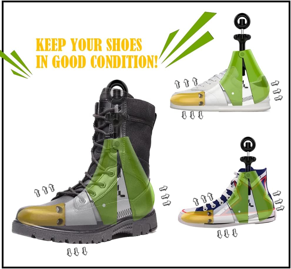 موسع الأحذية مناسب للعديد من أنواع الأحذية، لا يشمل الأحذية ذات الرقبة العالية والأحذية بدون أربطة أو سحابات.