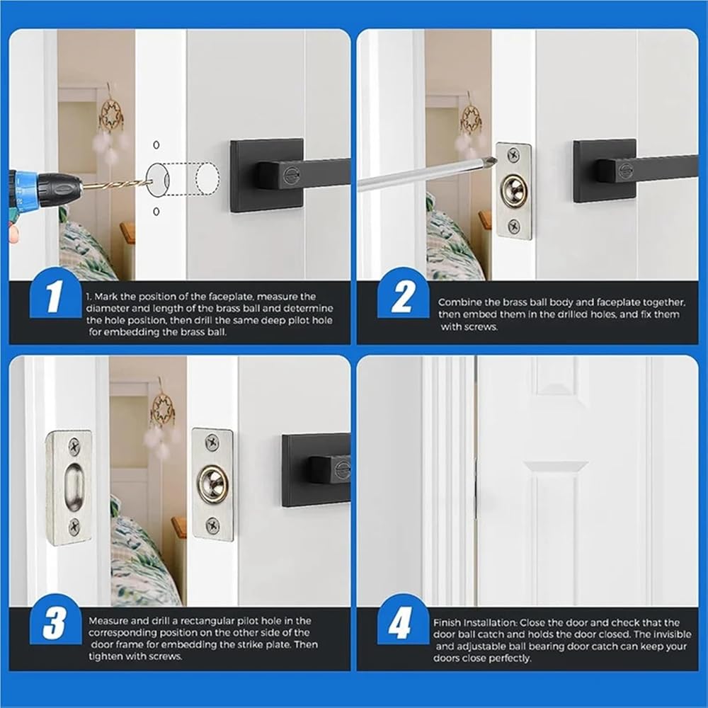 AEE3-4 عبوات من مقابض الأبواب الداخلية للأبواب الداخلية بمحمل مزدوج قابل للتعديل باللون الأسود