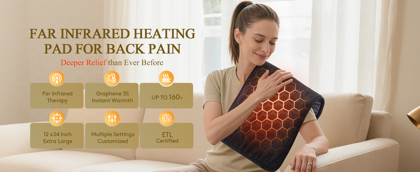 وسادة التدفئة بالأشعة تحت الحمراء البعيدة: 2X ألياف الكربون 3X حرارة أعمق لآلام الظهر والرقبة والأكتاف وتشنجات الدورة الشهرية - الجرافين 3S حرارة سريعة - نسيج قطيفة ناعم ودافئ للنساء مع إيقاف تلقائي لمدة 4 ساعات - 12 بوصة × 24 بوصة