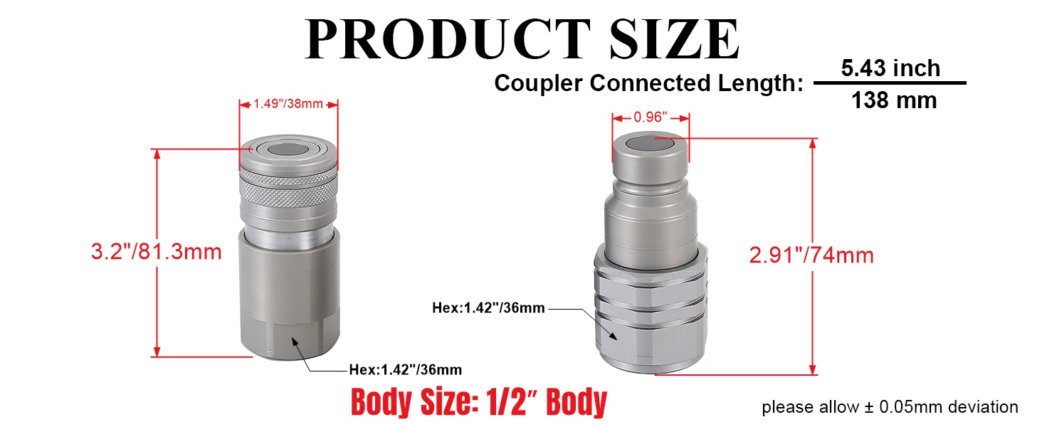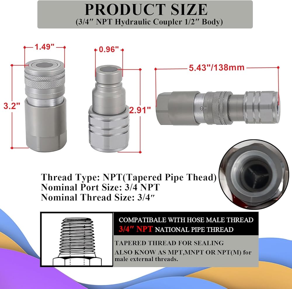 تتضمن الحزمة: مجموعة واحدة من تركيبات التوصيل السريع الهيدروليكي مقاس 3/4 بوصة npt، مع أغطية غبار مطاطية. نفس الصور.