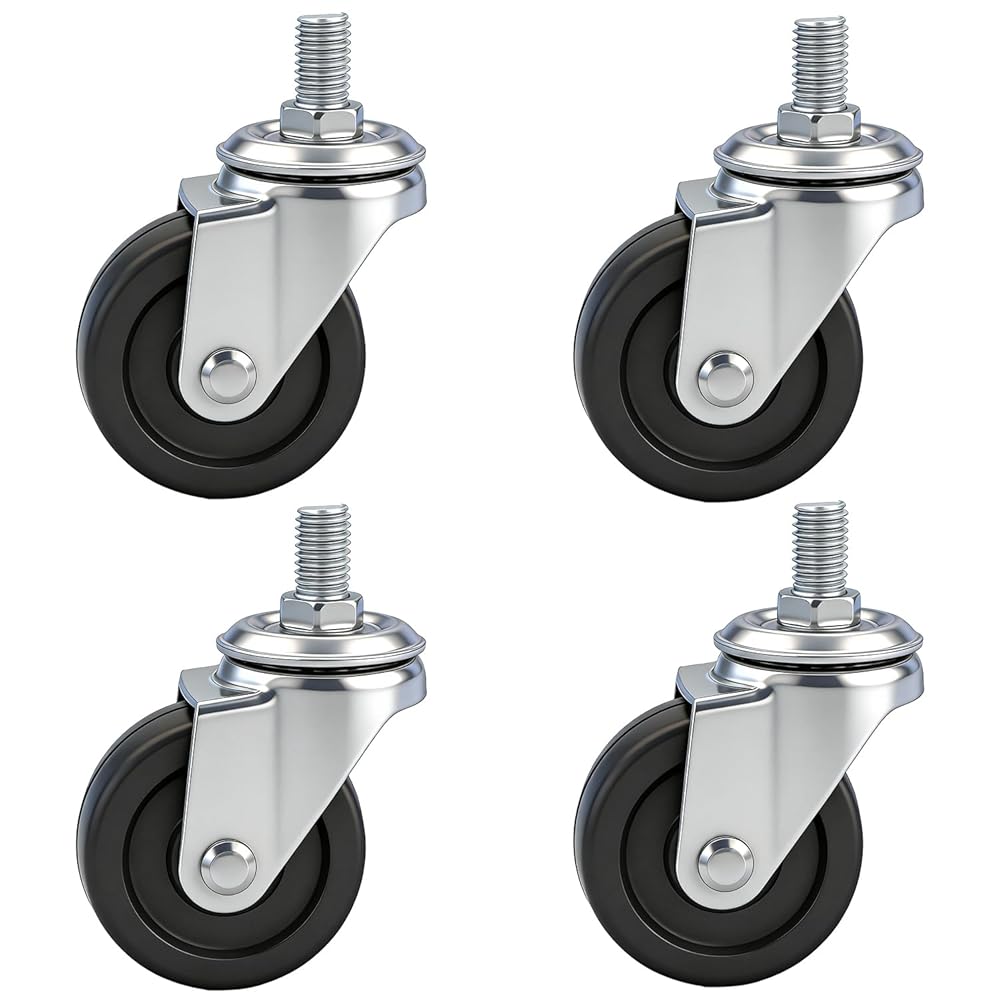 The rubber wheel material ensures silent, smooth rolling without damaging floors—no more noisy squeaks or scratches. The 360-degree swivel head delivers unmatched agility, letting you reposition equipment with ease. Whether you're mobile-mounting tools, office furniture, or utility carts, these threaded stem rubber casters are the go-to solution. We recommend measuring your existing stems before ordering to ensure compatibility. Backed by a hassle-free replacement guarantee, our 2 inch swivel casters promise both quality and confidence—move smarter with every roll.