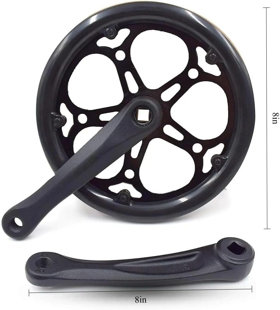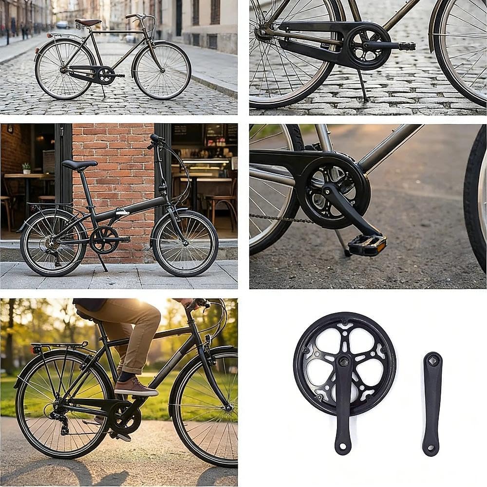 مجموعة التثبيت الكاملة: تتضمن مجموعة المكونات هذه جميع الأجزاء الضرورية: أذرع الكرنك اليسرى/اليمنى، وسلسلة 52T، والواقيات البلاستيكية. تأكد من المقاس والملاءمة مع دراجتك قبل الطلب.