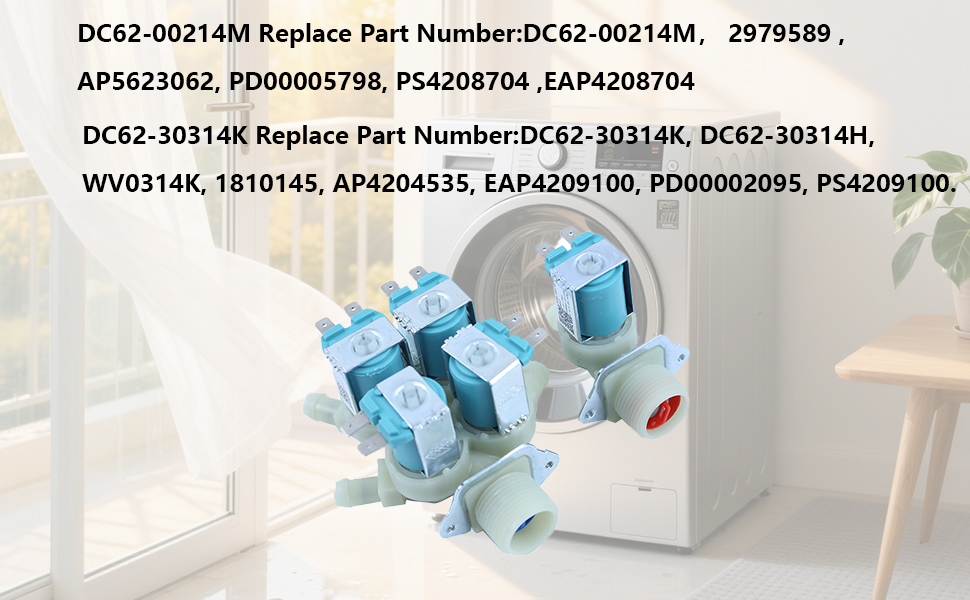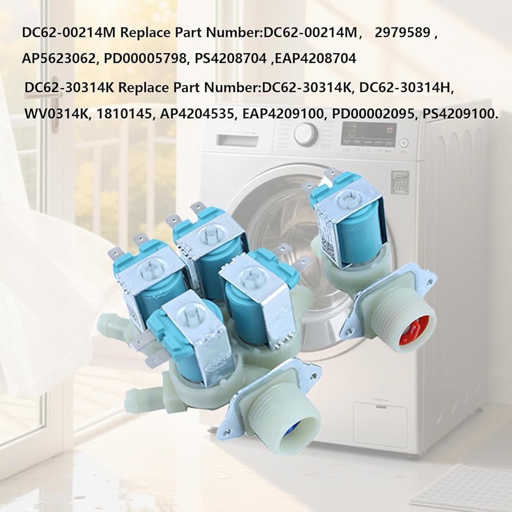 DC62-00214M & DC62-30314K غسالة صمام الملف اللولبي لمدخل المياه الباردة والساخنة استبدال سامسونج، غسالة Maytag، استبدال AP5623062، 2979589، PS4208704، DC62-30314H، 1810145، AP4204535