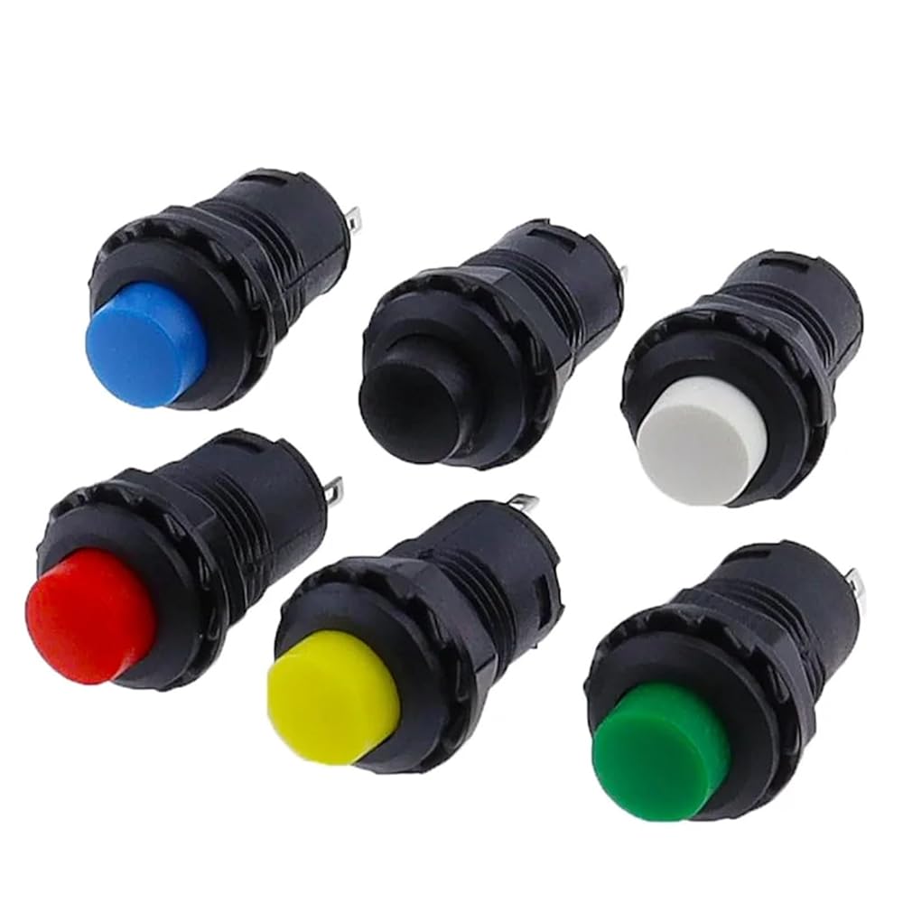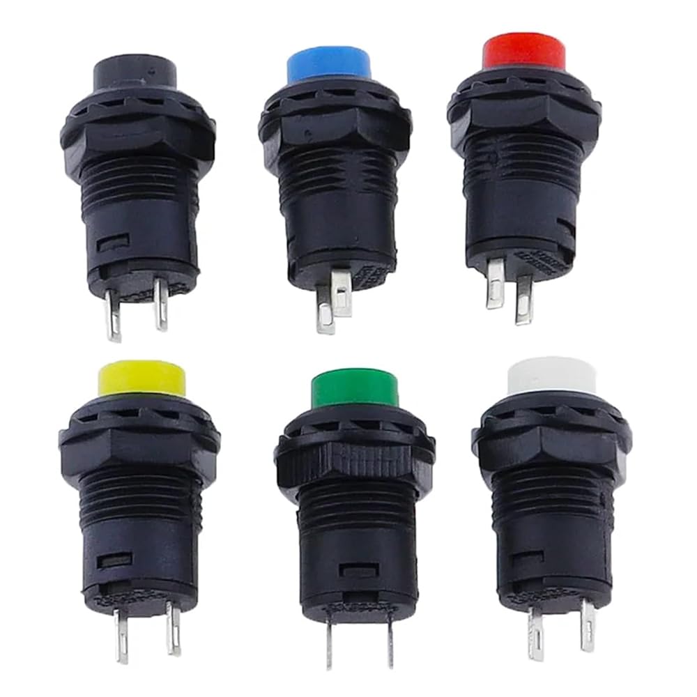 6 قطع مفتاح زر الضغط، مفاتيح ذاتية القفل/لحظية DS228 DS428 12 ملم إيقاف التشغيل 3A /125VAC 1.5A/250VAC (6 قطع أسود)