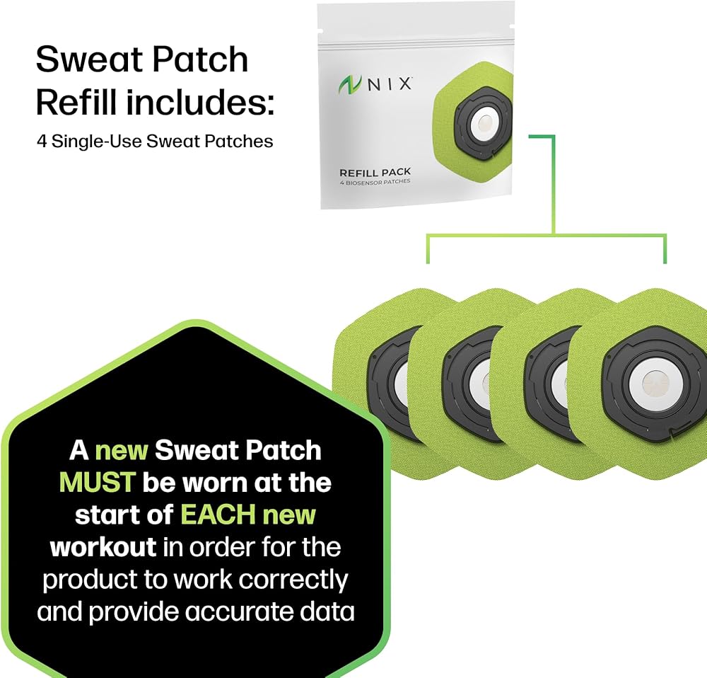 عبوات إعادة تعبئة رقعة العرق من نيكس - 4 رقع ترطيب تستخدم مرة واحدة قابلة لإعادة الاستخدام، وقابلة لإعادة الشحن، وتتبع السوائل، والكهارل، وفقدان الصوديوم، وغير غازية، وملحق اللياقة البدنية اللاصق فقط للرياضيين والتدريب