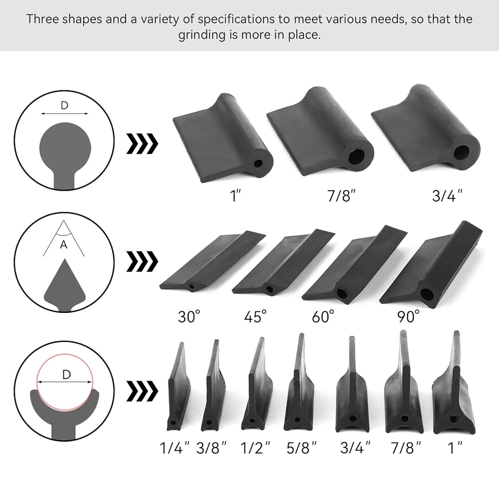 مقاسات متعددة - 3 قطع من مكعبات الصنفرة على شكل شرغوف: حجم حامل ورق الصنفرة: حوالي 3/4 بوصة 7/8 بوصة 1 بوصة؛ 4 قطع من وسادة التلميع على شكل ماسي، مقاس حامل ورق الصنفرة حوالي 90 درجة و60 درجة و45 درجة و30 درجة؛ 7 قطع من وسادة التلميع على شكل قرن، حجم حامل ورق الصنفرة حوالي 1/4 بوصة 3/8 بوصة 1/2 بوصة 5/8 بوصة 3/4 بوصة 7/8 بوصة 1 بوصة.