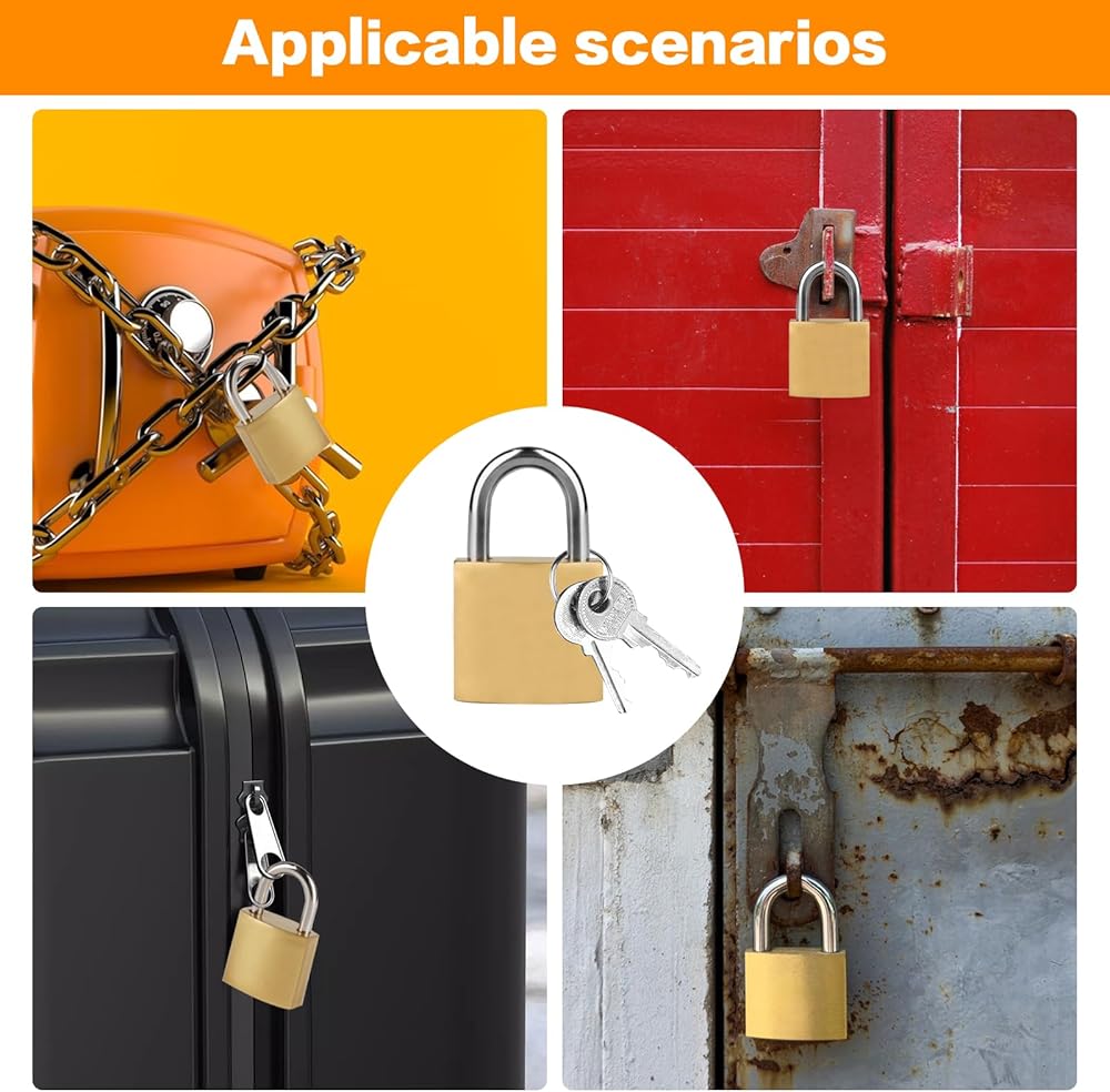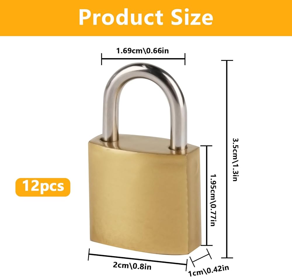 Upgrade Your Travel Security with Style Keep your belongings safe and stylish with this 12-pack of 20mm antique bronze keyed padlocks. Designed for travelers, gym-goers, and daily commuters, these compact D-shaped locks combine vintage charm with modern durability. Durable Copper-Plated Construction Each lock features a high-quality alloy body coated with a polished antique bronze finish, offering a premium look that resists scratches and fading. The hardened steel shackle withstands cutting or prying attempts, ensuring robust protection for luggage zippers, backpack compartments, locker doors, and more. Perfect for On-the-Go Use Measuring just 20mm wide (35mm total length), these lightweight locks are easy to carry and store. Their slim profile fits snugly on backpacks, suitcases, gym bags, or storage units, providing discreet security without sacrificing aesthetics. Simplified Key Organization The set includes 12 locks paired with 2 distinct keys, allowing you to secure multiple items with minimal key clutter. – perfect for families, shared spaces, or frequent travelers managing multiple bags. Trusted for Everyday Protection Whether you're safeguarding valuables during international trips, securing gym locker contents, or organizing backpacks, these bronze-finish padlocks deliver reliable security with a timeless design. Package Includes: 12 x 20mm Antique Bronze Keyed Padlocks