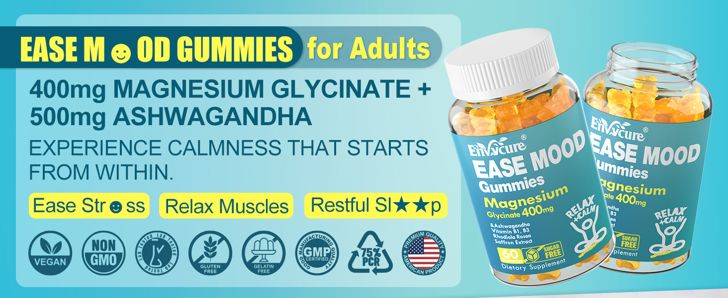 [دعم الطاقة]: التركيبة الفريدة من علكة أشواغاندا المغنيسيوم الهادئة تقلل من التعب، وتوفر دعم الطاقة، عدد 2 في اليوم، زجاجة تحتوي على 60 قطعة، إجمالي زجاجتين.
