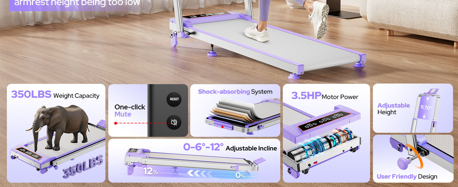 【محرك هادئ قوي بقوة 3.5 حصان】تم تصميم جهاز المشي المحمول هذا بقوة 3.5 حصان لتحقيق النتائج، ويدعم ما يصل إلى 350 رطلًا ويوفر سرعات ثابتة تصل إلى 6 ميل في الساعة. توفر وسادة المشي القابلة للطي تشغيلاً سلسًا مع الحفاظ على الضوضاء أقل من 40 ديسيبل. محركها القوي والهادئ يجعلها مثالية للاستخدام في الشقة أو المكتب دون إزعاج الآخرين.