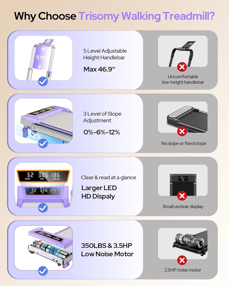 【قضيب مقبض قابل للتعديل - راحة عائلية حقيقية】نحن ندرك مدى الإحباط الذي يمكن أن يحدث عندما يكون المقود منخفضًا جدًا - آلام الظهر والخصر، ويشعر التمرين بأكمله بالتعب. لحل هذه المشكلة حقًا، قمنا بتصميم جهاز المشي هذا بمقود قابل للتعديل بـ 6 مستويات (35 بوصة - 47 بوصة) لاستيعاب المستخدمين من مختلف الأطوال وتفضيلات التمرين. مثل اليد الداعمة التي ترشدك إلى تمرين طبيعي أكثر راحة، مما يوفر الراحة والملاءمة لجميع أفراد الأسرة.