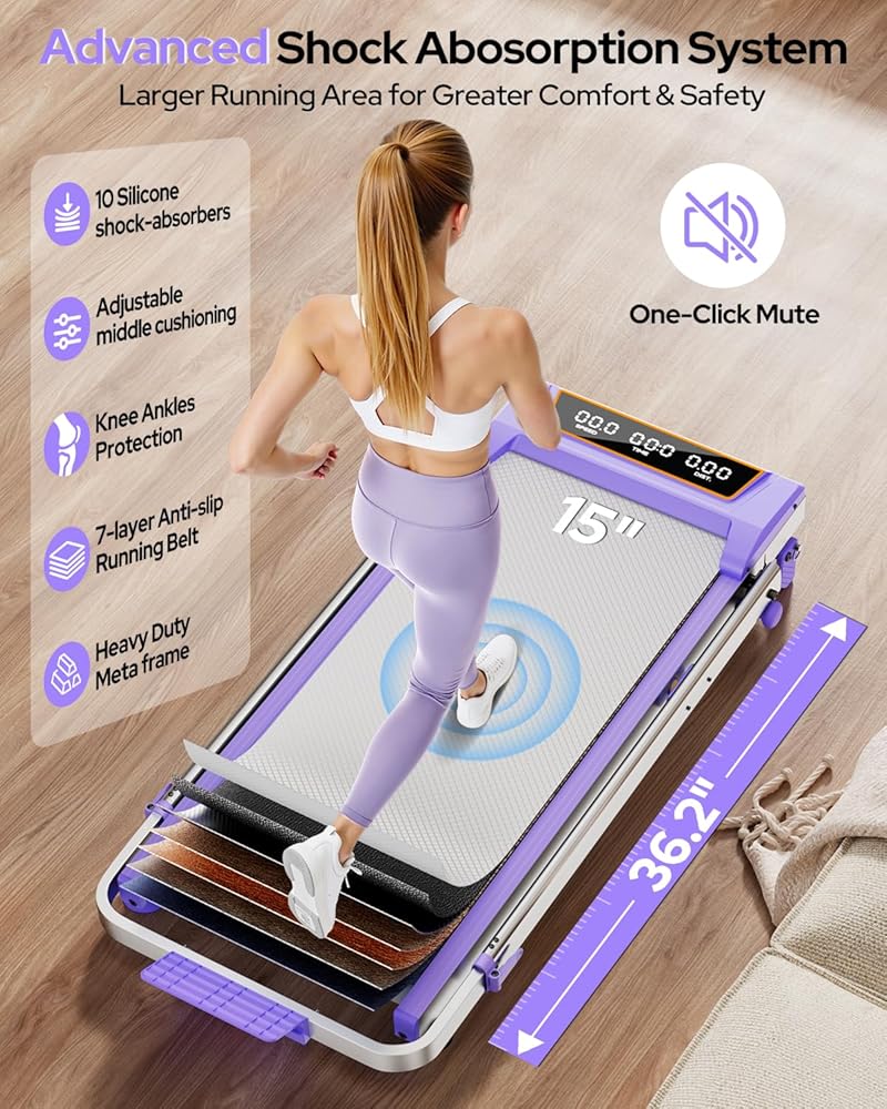 【نظام وسادة صديق للمفاصل: تم تجهيز جهاز المشي القابل للطي هذا بحزام جري مضاد للانزلاق من 7 طبقات، و10 ممتصات للصدمات من السيليكون و4 وسائد للصدمات، مما يساعد على تقليل تأثير المفاصل بنسبة تصل إلى 60% مقابل أجهزة المشي القياسية. لا يوفر لك تجربة تمرين مريحة فحسب، بل يقلل أيضًا من تأثير المفاصل بشكل فعال ويحمي ركبتيك، مما يجعله مثاليًا لأولئك الذين يعانون من مفاصل حساسة.