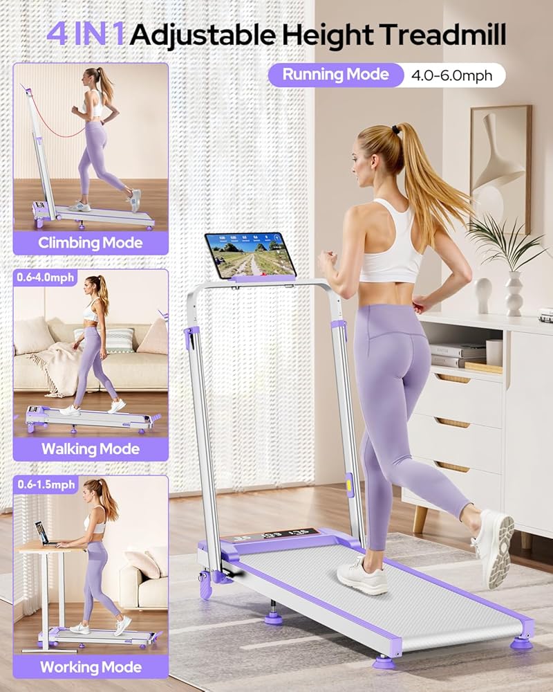 【جهاز مشي 4 في 1 】حافظ على نشاطك طوال اليوم مع وسادة المشي 4 في 1 هذه مع شريط المقبض، حيث تجمع بين وسادة المشي، وجهاز مشي تحت المكتب، وجهاز مشي قابل للطي ومتسلق التل في جهاز واحد. استخدمه تحت المكتب عند طي شريط المقبض (0.6-2.5 ميل في الساعة)، أو رفع شريط المقبض للركض (2.5-4.0 ميل في الساعة) أو الجري (4.0-6.0 ميل في الساعة). بدلاً من أجهزة المشي التقليدية، فهو يوفر التحرر من قيود ممارسة الرياضة ويسمح لك بممارسة الرياضة في أي وقت - المطر أو الشتاء أو الطقس السيئ. مثالي للمنزل أو المكتب أو صالة الألعاب الرياضية.