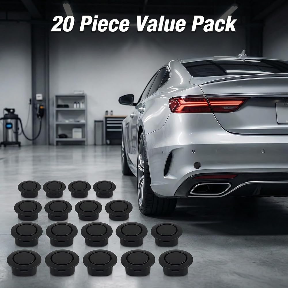 【ملاءمة عالمية دقيقة للفتحات 25-26 مم】 يبلغ مقاس كل قابس 1.18 بوصة × 1.18 بوصة × 0.46 بوصة مع قاعدة مرنة (0.87 بوصة - 0.97 بوصة OD)، مصممة لتناسب فتحات الاستشعار القياسية بشكل آمن في معظم السيارات الحديثة وسيارات الدفع الرباعي وسيارات السيدان. يرجى قياس قطر الثقب قبل الشراء للحصول على ملاءمة مضمونة.
