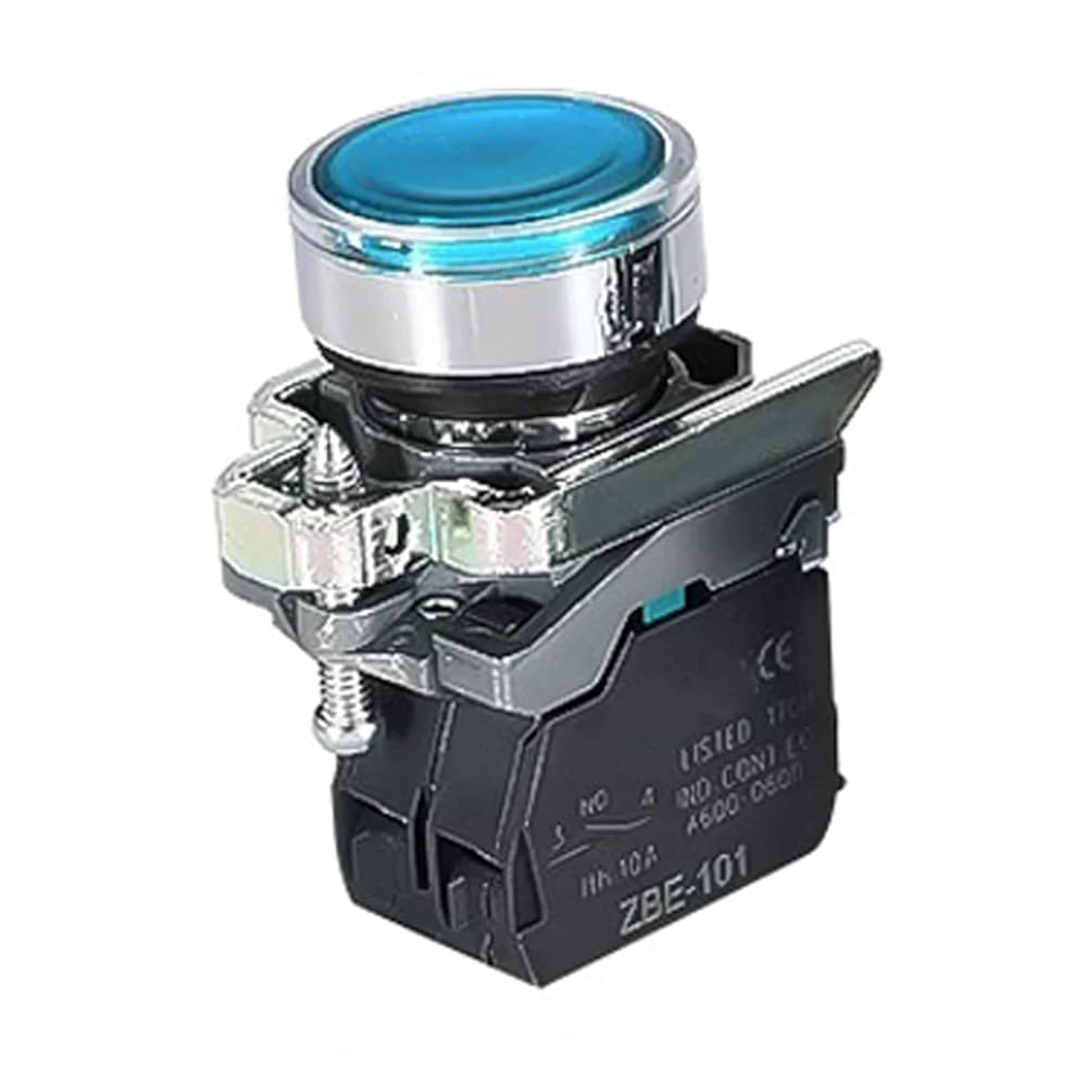 1pc Push button switch, XB4 round flat head button with light start stop normally open normally closed self-reset switch