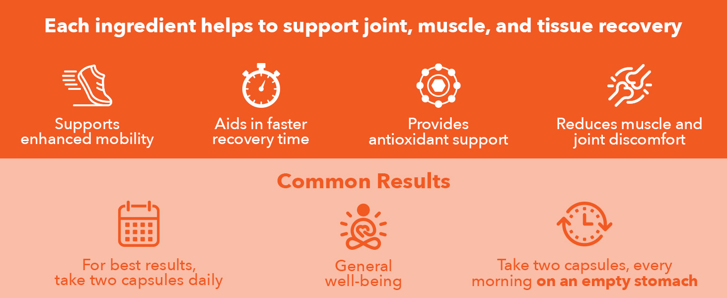 فعال - تناول كبسولتين يوميًا على معدة فارغة. قد تلاحظ فوائد خلال أول 2 إلى 3 أسابيع، مع تعزيز مرونة المفاصل.