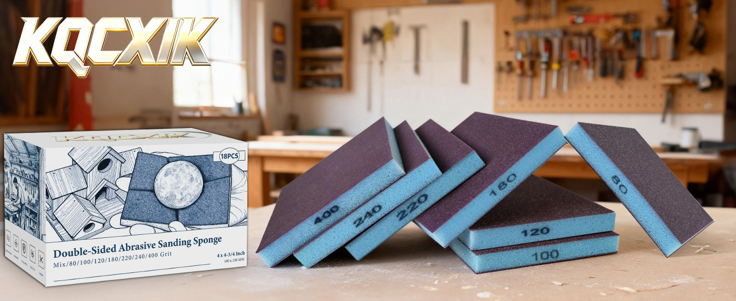 جاهز للاستخدام: لا حاجة لأي أدوات إضافية - افتح الصندوق وابدأ بالصنفرة على الفور. تضمن الرغوة المبطنة ضغطًا متساويًا وصنفرة ناعمة. مثالية للعمل على الخشب والمعادن والجدران الجافة وأدوات المطبخ وإعداد طلاء السيارات والتلميع العام. تتضمن مجموعة كاملة من 18 إسفنجة صنفرة (3 لكل منها 80، 100، 120، 180، 220، و240 حبيبة) مع ملصقات واضحة، مما يزودك بالحبيبات المناسبة لكل مرحلة.