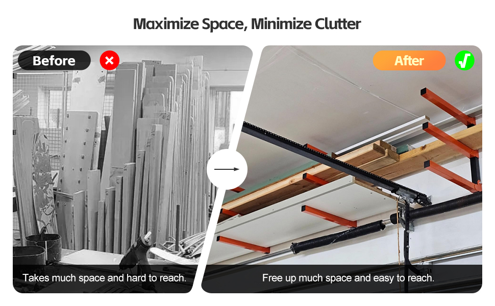 حوّل مساحة الحائط المهدرة إلى مساحة تخزين - التصميم المدمج المكون من 3 طبقات لأرفف التخزين الخشبية هذه يحصل على أكوام طويلة وفوضوية من الخشب من الأرض وعلى الحائط، مما يوفر مساحة للسيارات والأدوات والمشروعات في المرائب الضيقة والسقائف ومساحات العمل اليدوية.