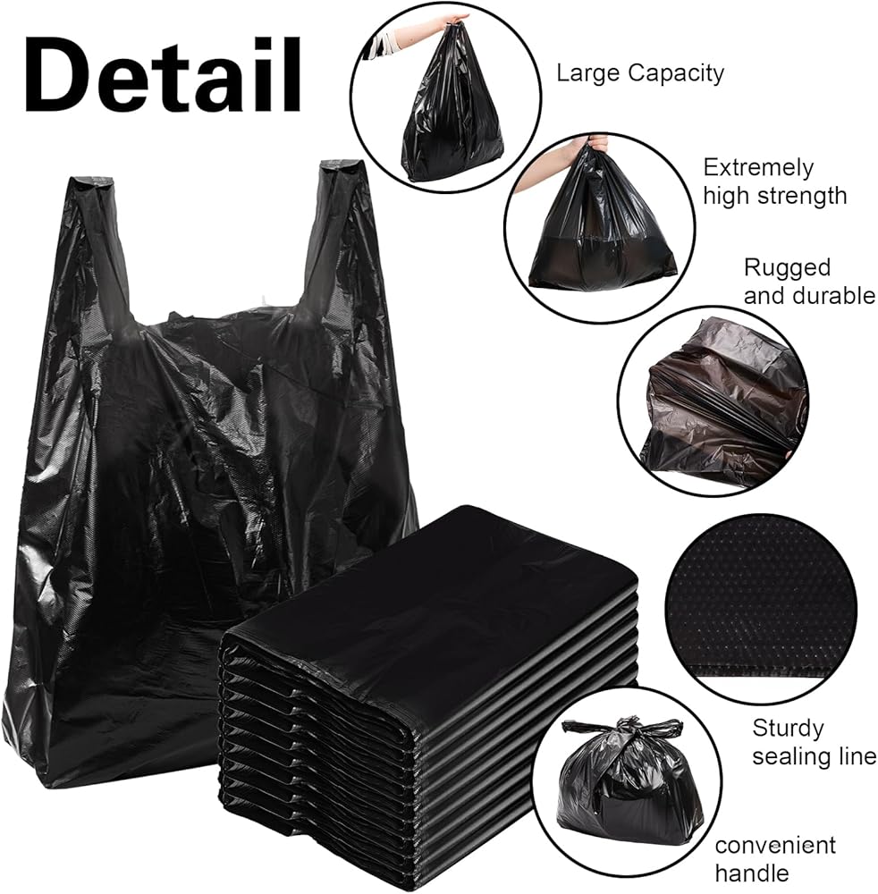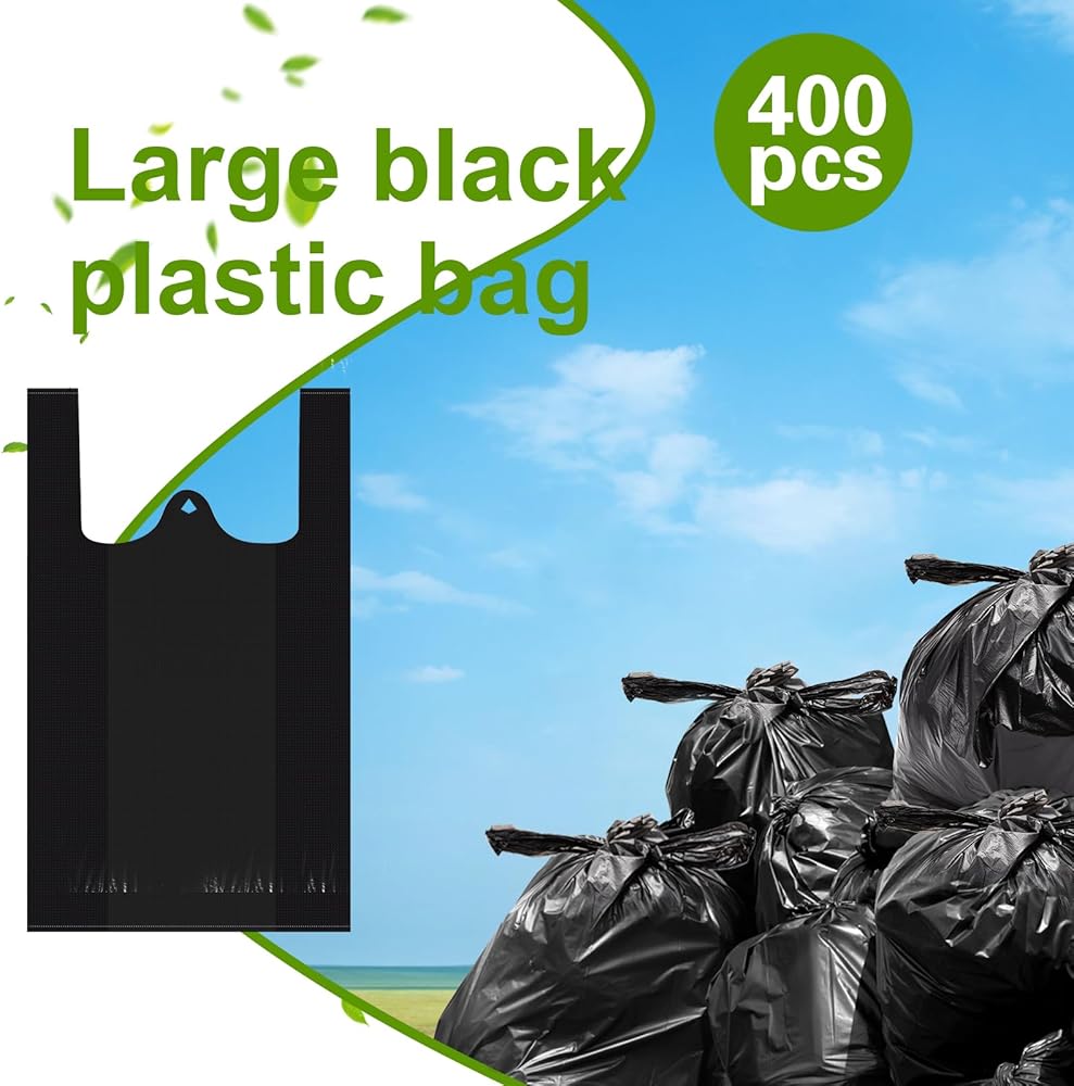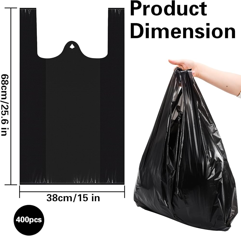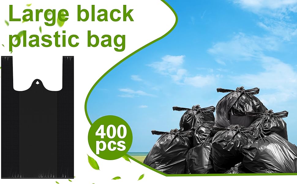 • حزمة قيمة كبيرة: تتضمن العبوة 400 قطعة من أكياس التسوق البلاستيكية السوداء الكبيرة مع مقابض للاستخدام اليومي حسب الحاجة